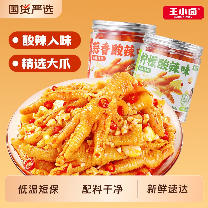 王小卤无骨鸡爪柠檬酸辣下酒菜去骨凤爪小零食小吃虎皮解馋夜宵