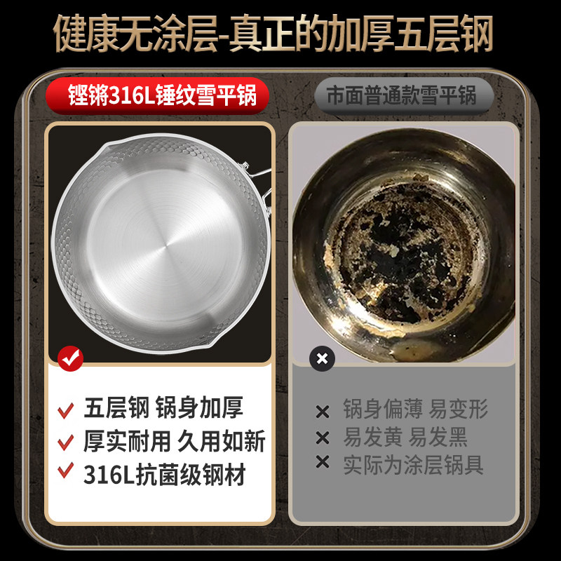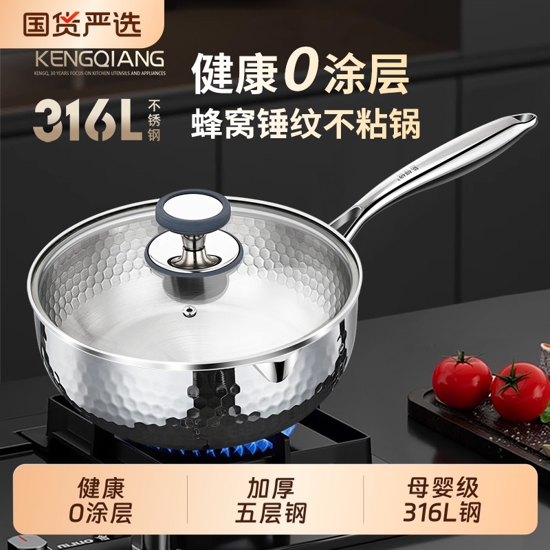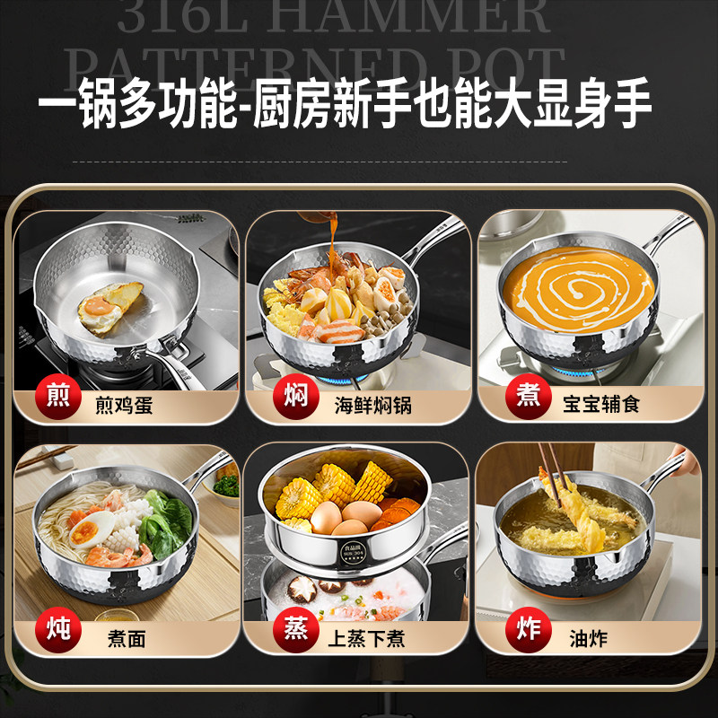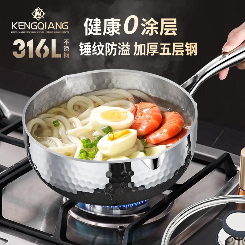 铿锵316L不锈钢雪平锅家用无涂层不粘锅宝宝辅食专用小奶锅汤锅