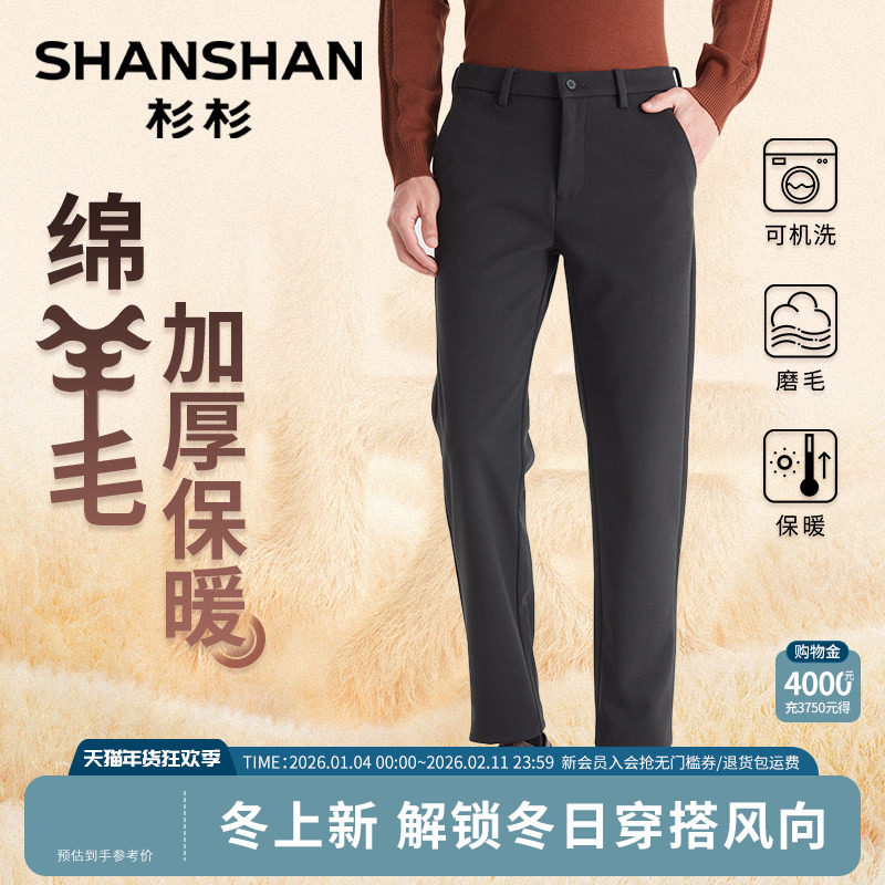 杉杉羊毛加厚休闲裤男款2025秋冬季新品保暖直筒男士长裤子西裤男