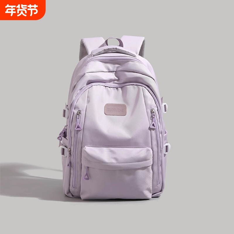 大学生双肩包女2025新款初中小学生书包电脑包德国旅行包紫色红色