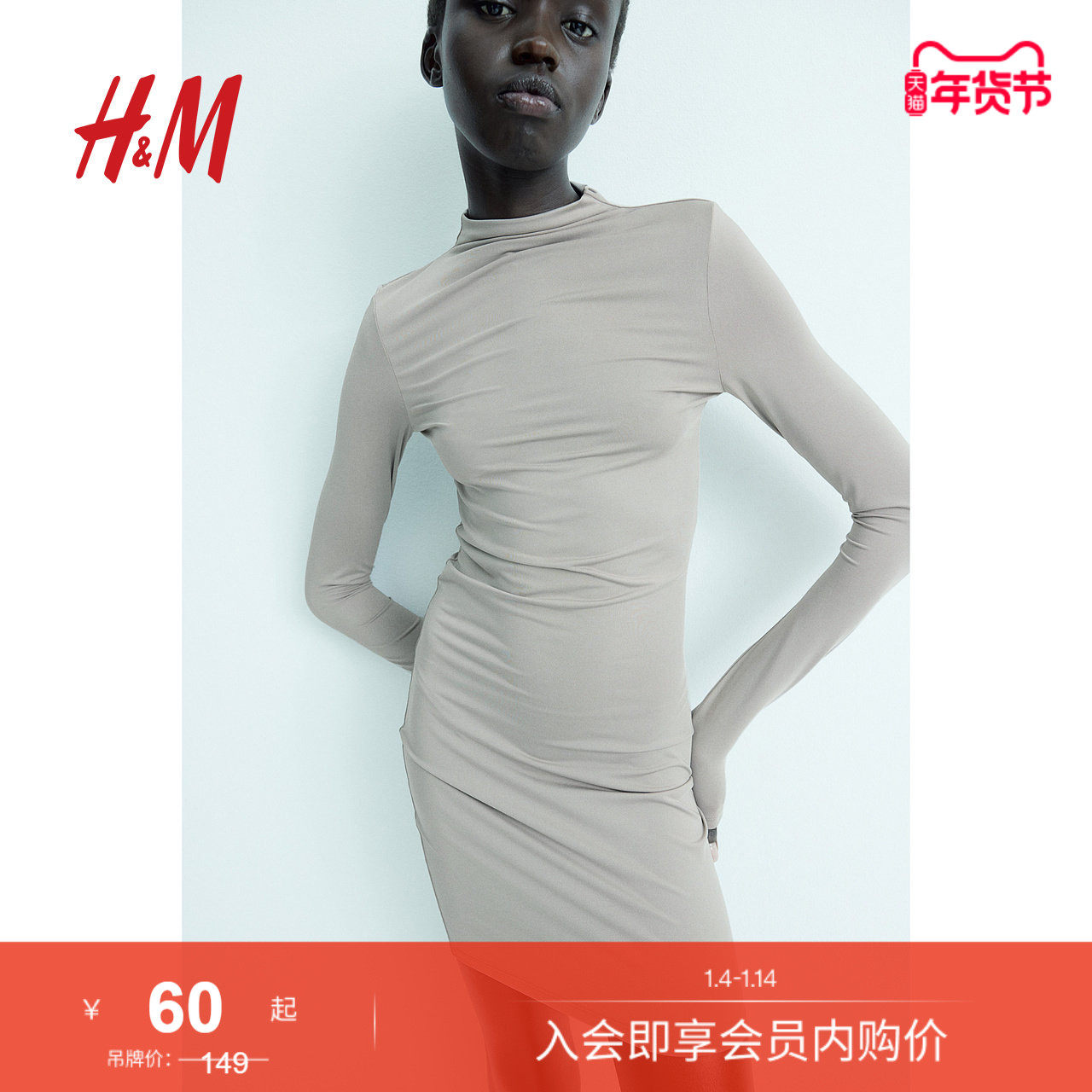 HM女装连衣裙春季时尚休闲高领修身显瘦紧身短裙1234799