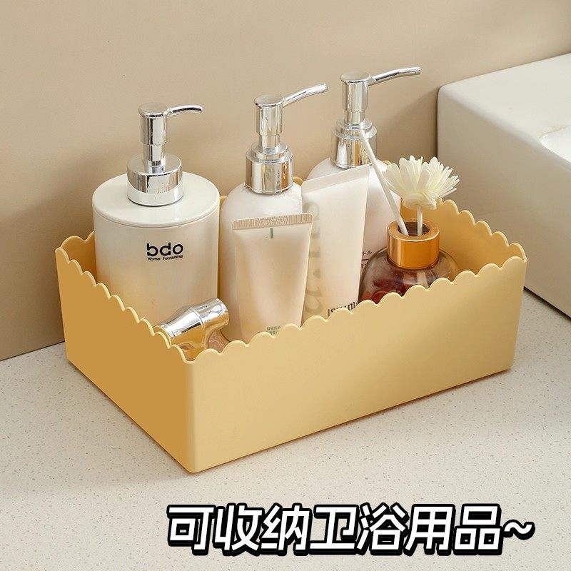 桌面收纳盒化妆品塑料置物盒家用杂物零食储物筐宿舍浴室整理盒子