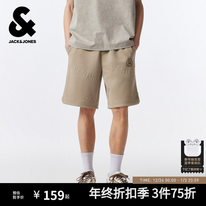 杰克琼斯运动短裤男秋季2025新款肌理提花宽松休闲五分裤子男装