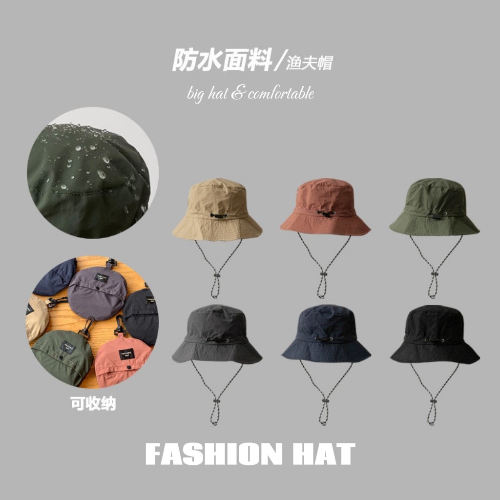 大头围速干防水可折叠渔夫帽夏季登山防晒帽子男女户外露营收纳帽