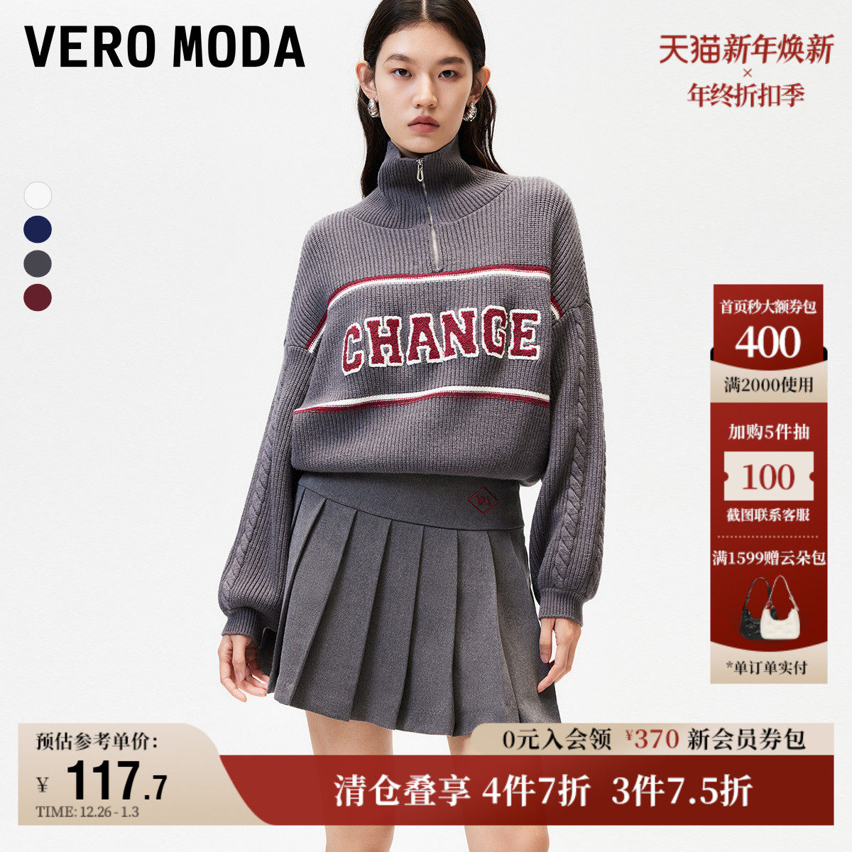Vero Moda奥莱半身裙秋冬新款学院风字母刺绣jk少女百褶裙流行