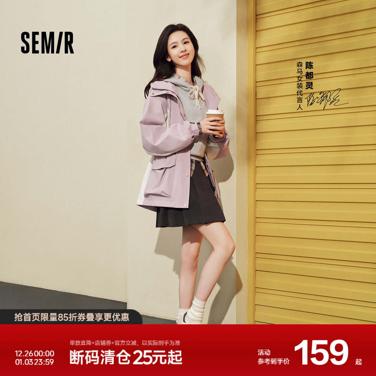 [商场同款]森马半身裙女格纹A字潮流复古2024秋季新款百褶裙盐系