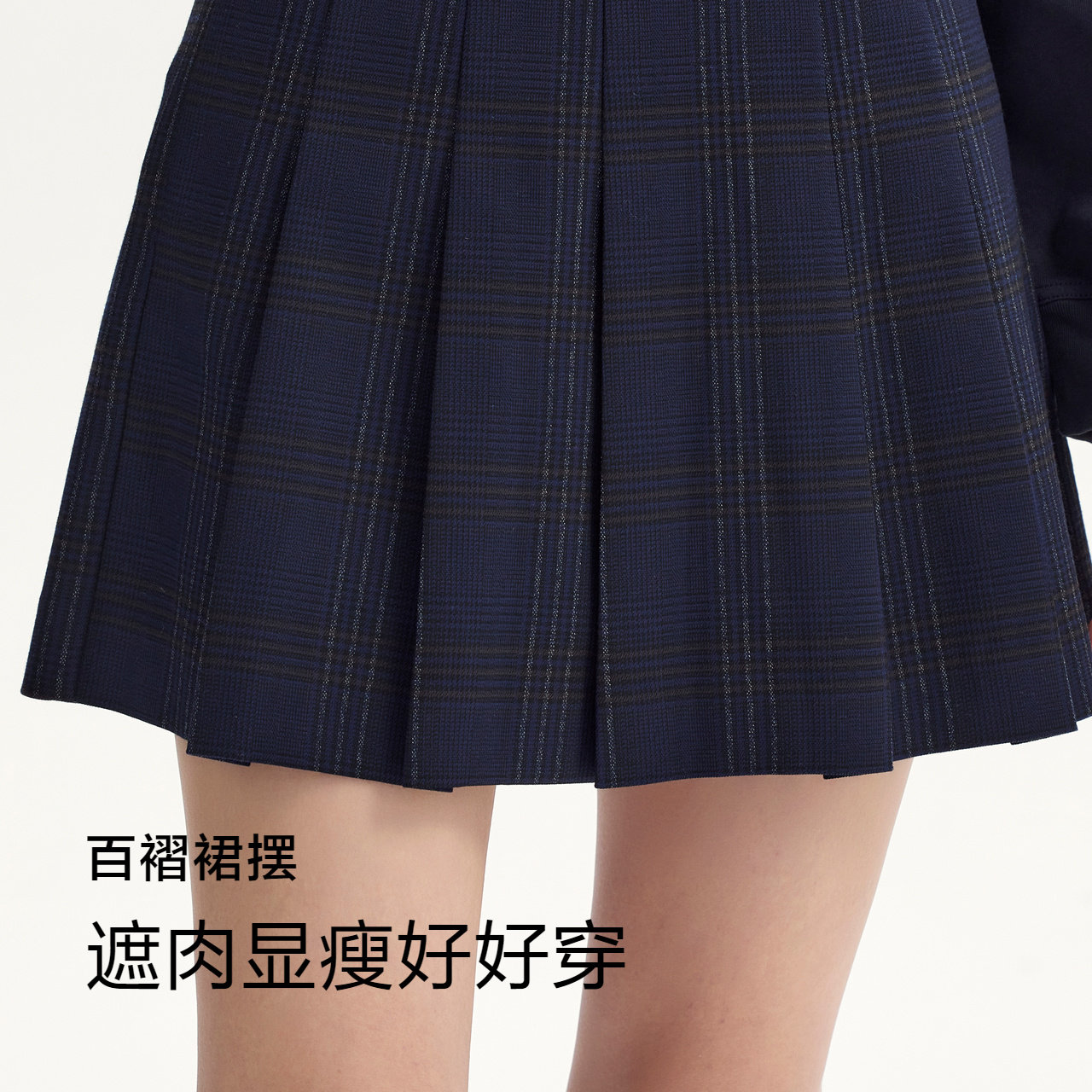 亮眼复古格纹 A字百褶裙实力遮肉显瘦