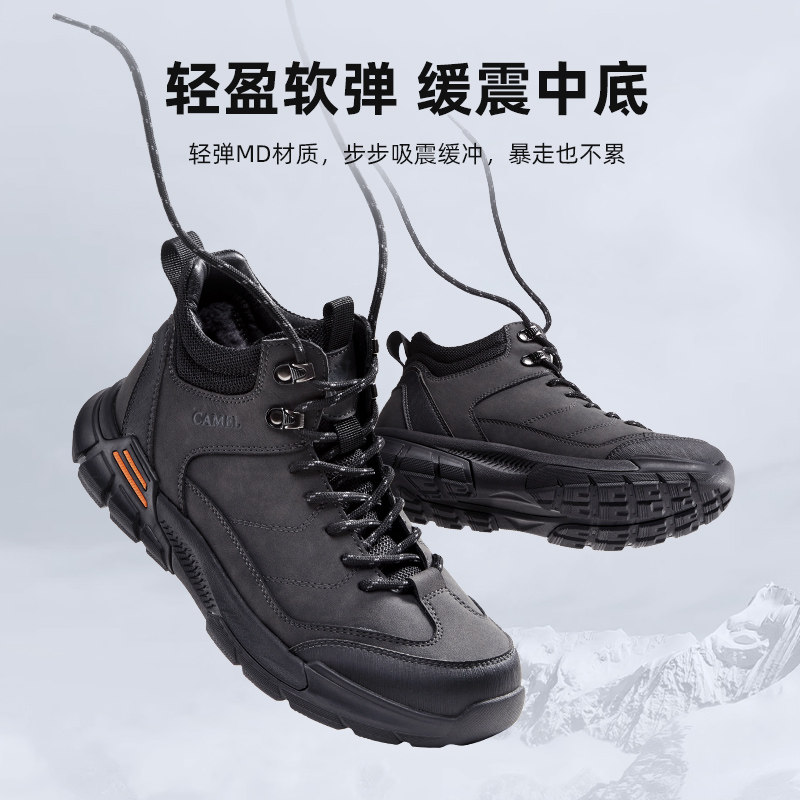 骆驼加绒男鞋2026春夏运动鞋男款高帮保暖棉鞋户外徒步登山