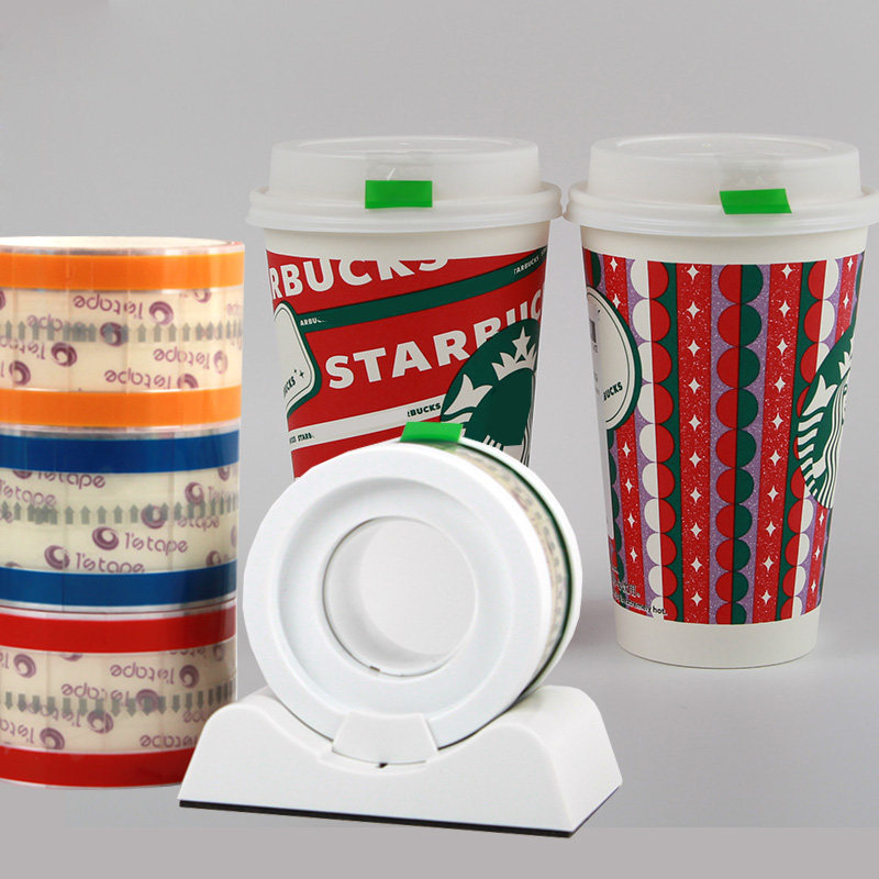易撕贴封口贴胶带奶茶店烘焙咖啡饮料杯口杯盖食品外卖封签包装密封防漏封口胶带饮品三明治金透明索引贴底座