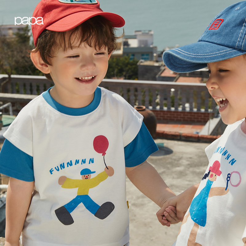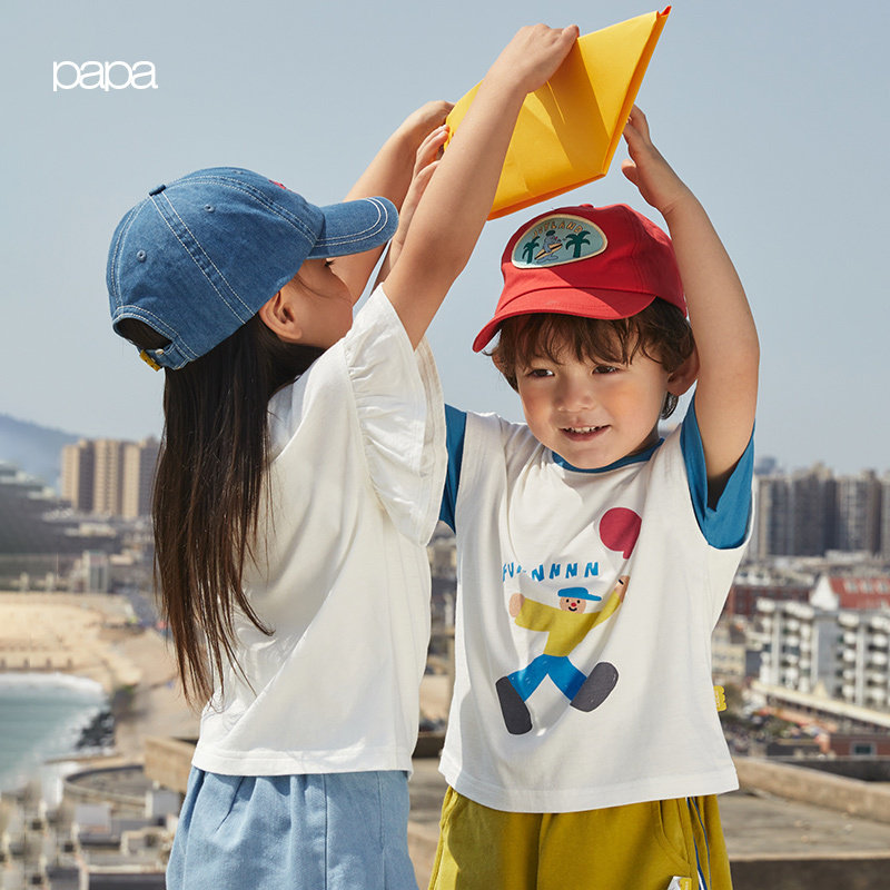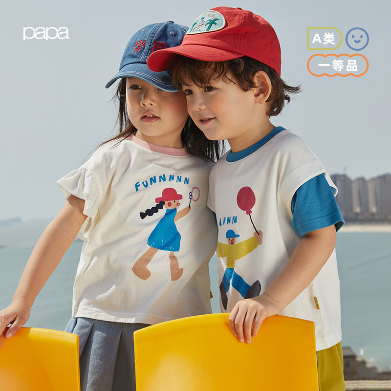 papa爬爬夏季男女宝宝童趣印花T恤儿童纯棉短袖可爱洋气上衣时髦