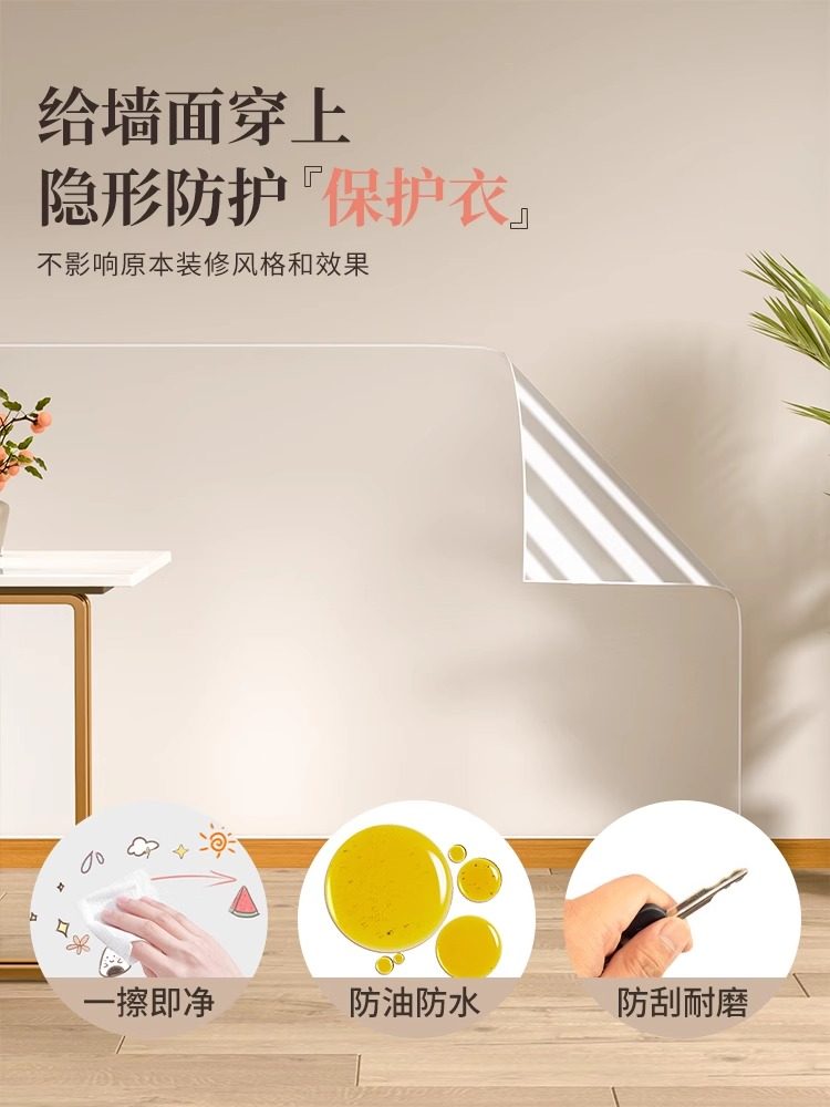 乳胶漆墙面保护膜防踢脏透明墙贴纸静电自粘防水贴膜厨房吸附立体