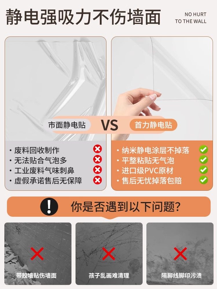 静电墙面保护膜不伤墙透明静电贴吸附墙壁贴纸乳胶漆防水防油客厅