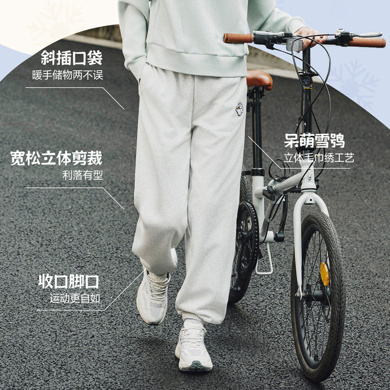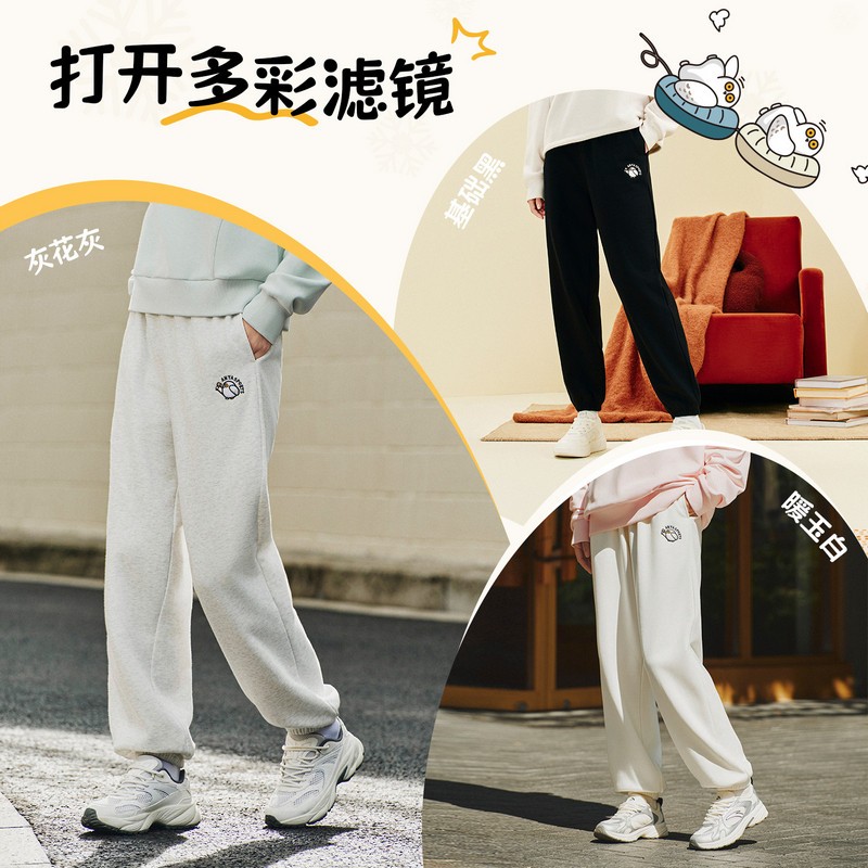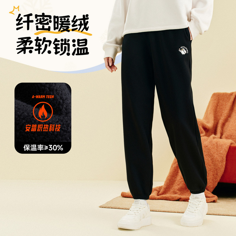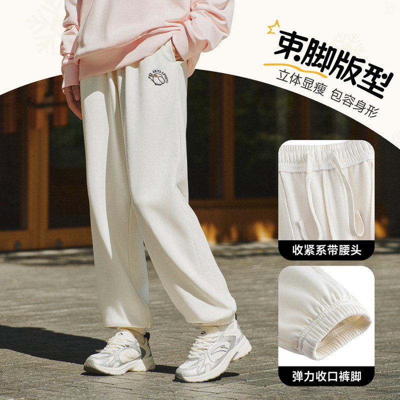 安踏雪鸮卫裤丨休闲束脚裤女春季新款加绒保暖针织长裤学院运动裤