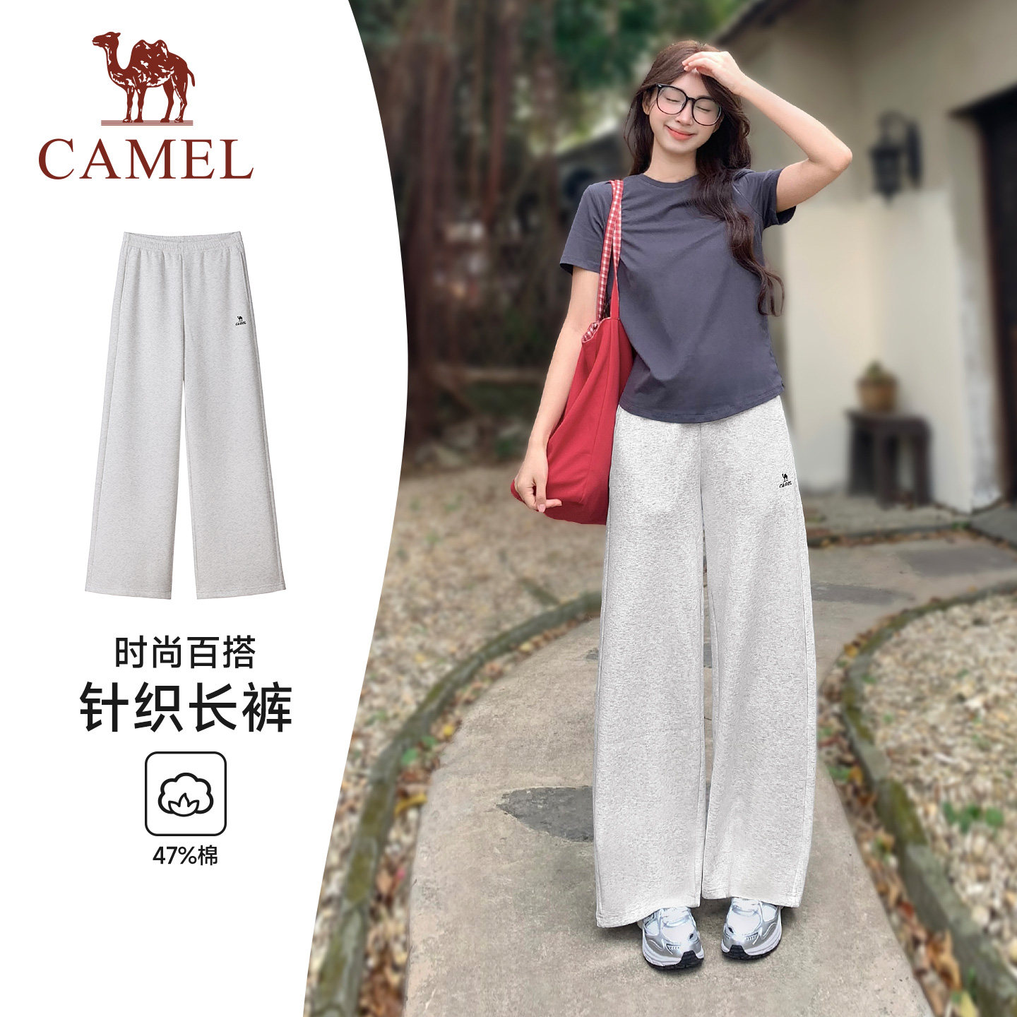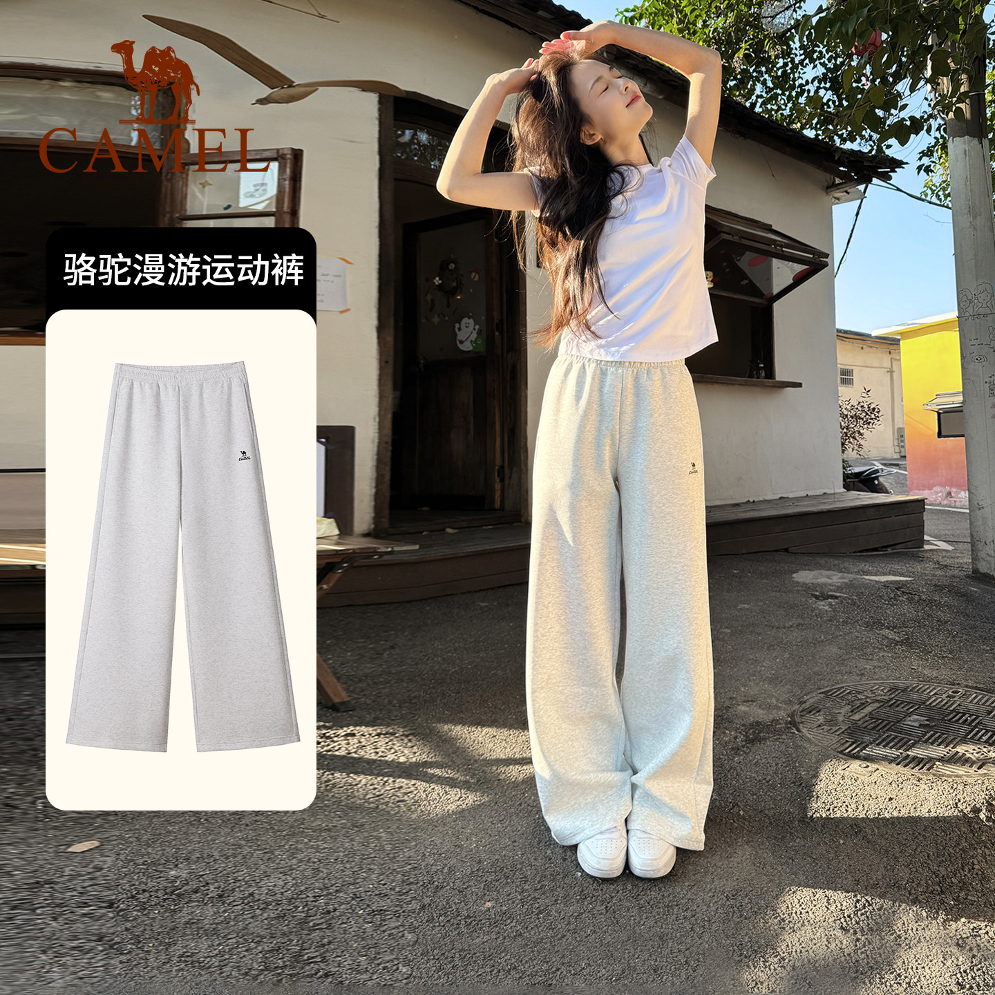 骆驼漫游休闲裤女2026夏季新款运动针织裤棉感直筒宽松阔腿卫裤男