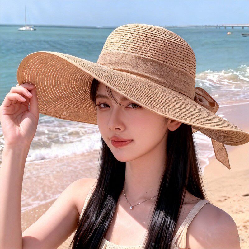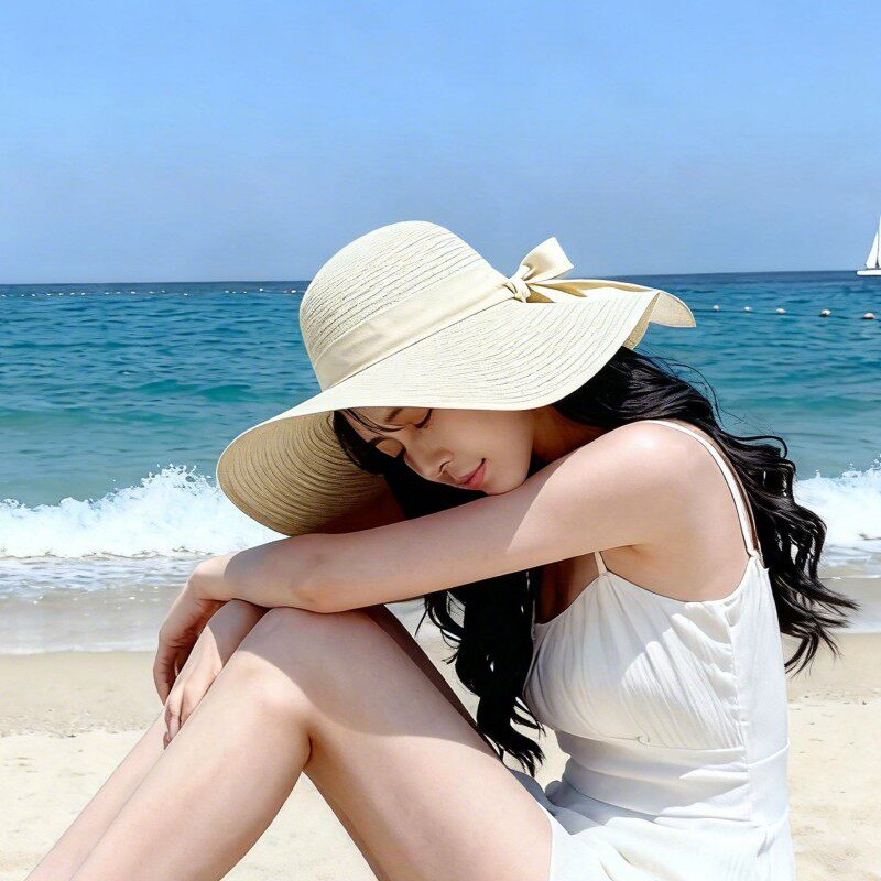 海边度假沙滩帽子女夏季防晒防紫外线遮阳帽草帽出游太阳帽红色