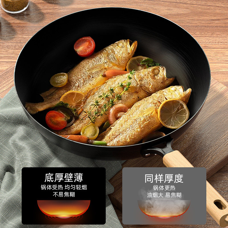 【经典款】中康精铁炒锅铁锅氮化防锈无涂层炒锅电磁炉燃气灶通用