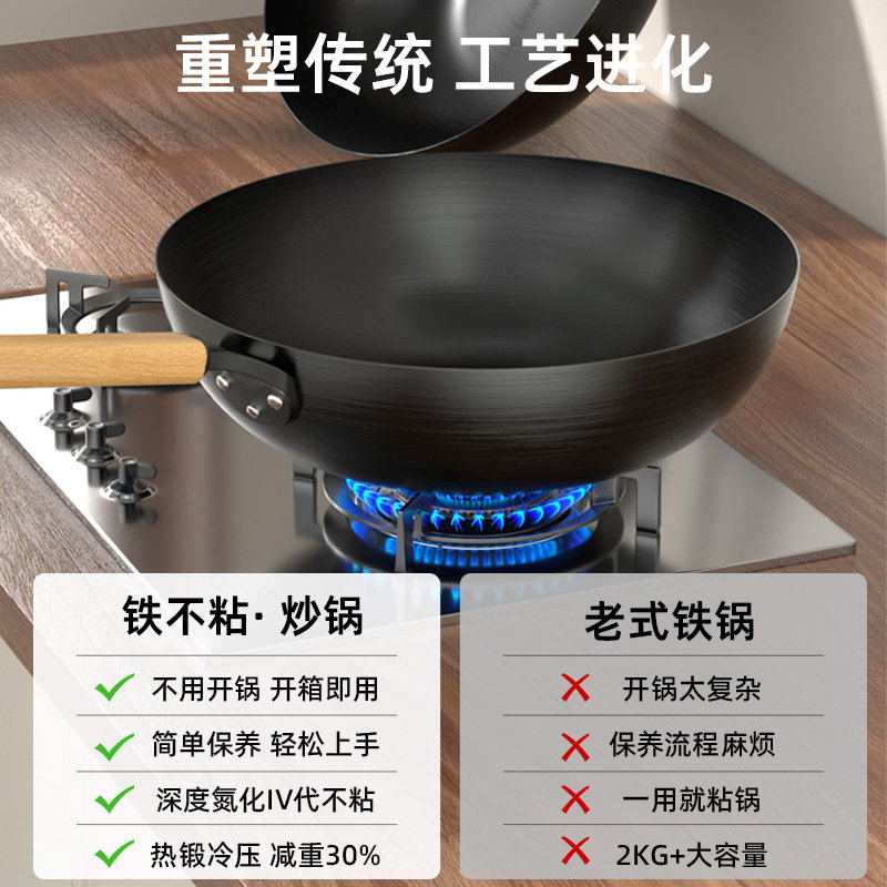 铁锅官方旗舰炒菜锅老式炒锅铁锅家用不粘锅无涂层燃气灶适用