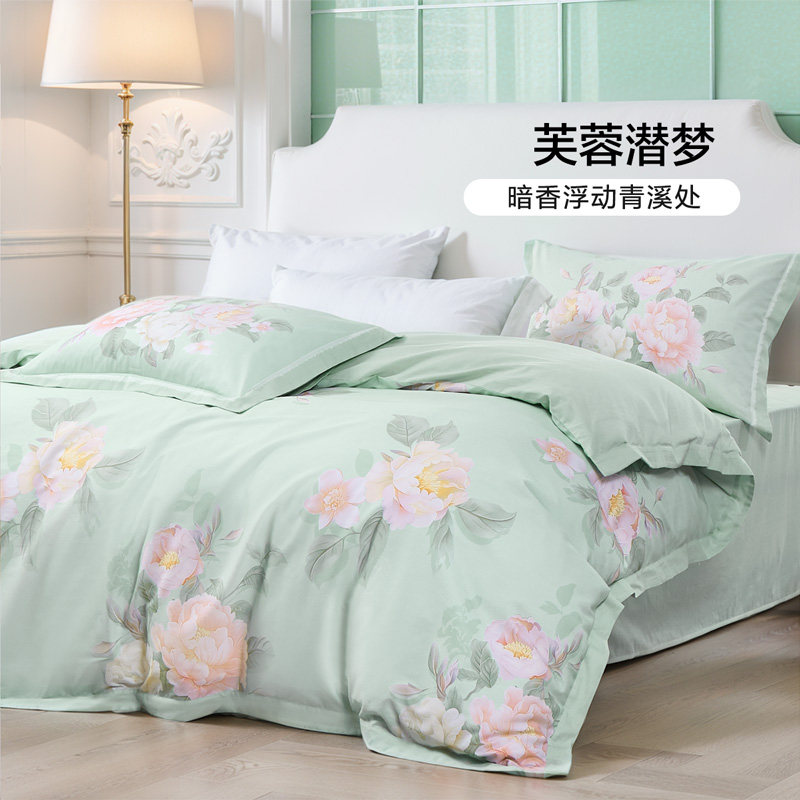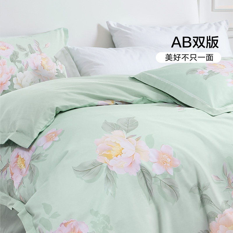 富安娜家纺40支纯棉四件套印花简约被套全棉床单60支被罩床上用品
