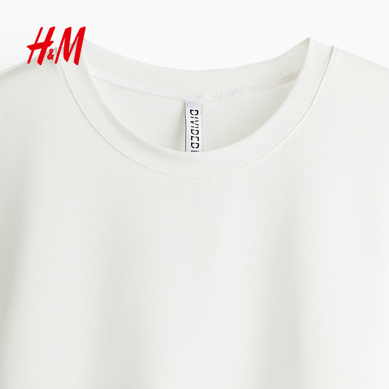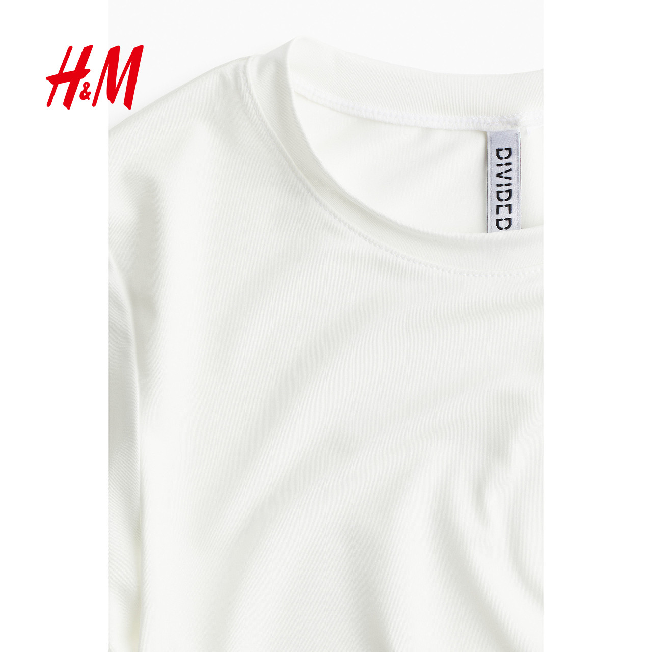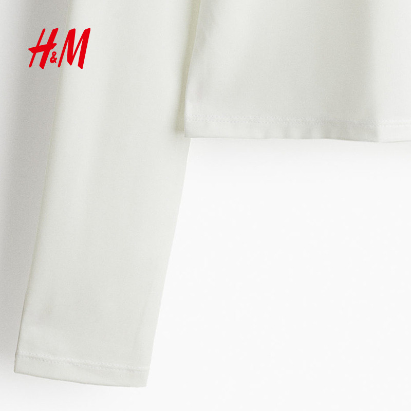 HM女装T恤冬季修身圆领柔软细纤维长袖短上衣叠穿打底衫1252943