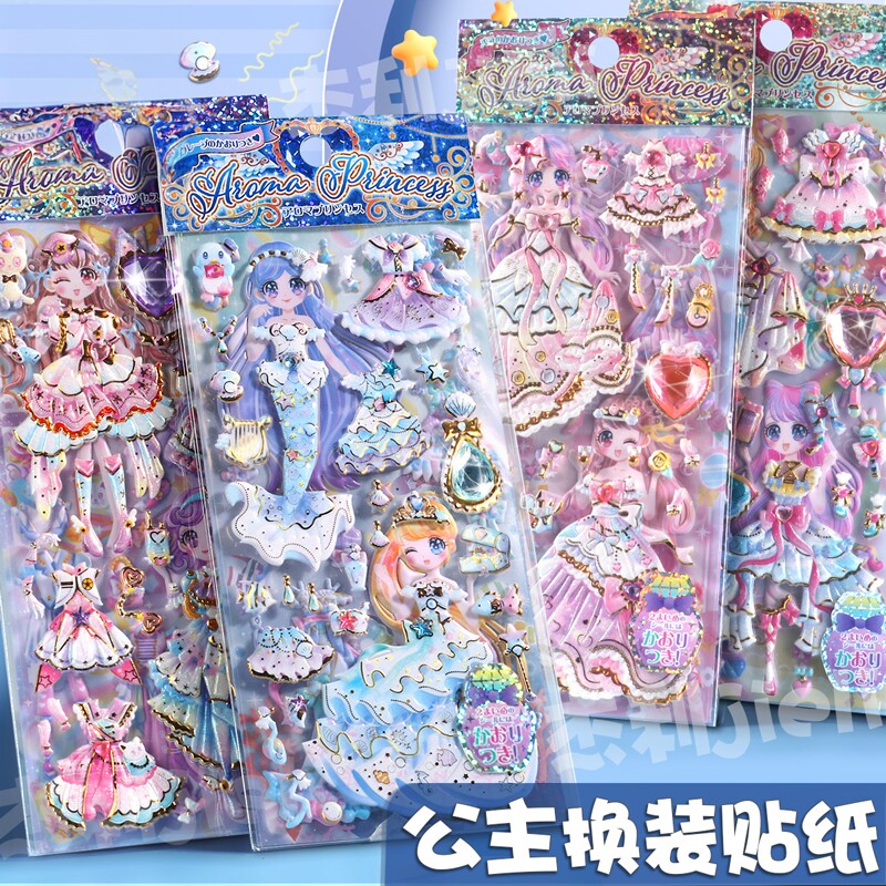 儿童贴纸美丽公主换装贴纸书美人鱼裙子泡泡贴钻石贴画女孩美少女换装贴纸百变换装秀双层换衣服贴纸立体