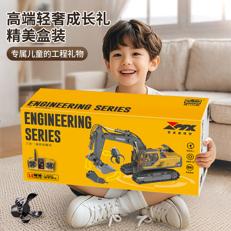 问南风 多功能合金遥控挖掘机玩具车工程车仿真挖土机电动挖挖机