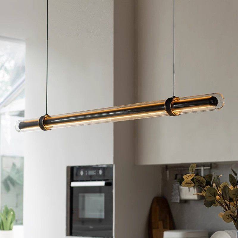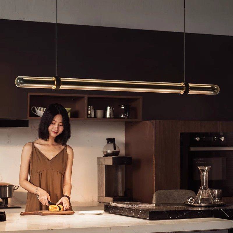 观月饭厅吊灯轻奢现代茶室简约岛台吧台餐桌高端一字长条灯具