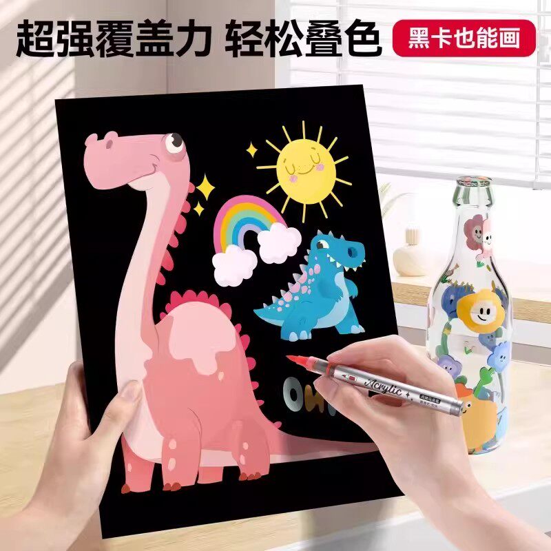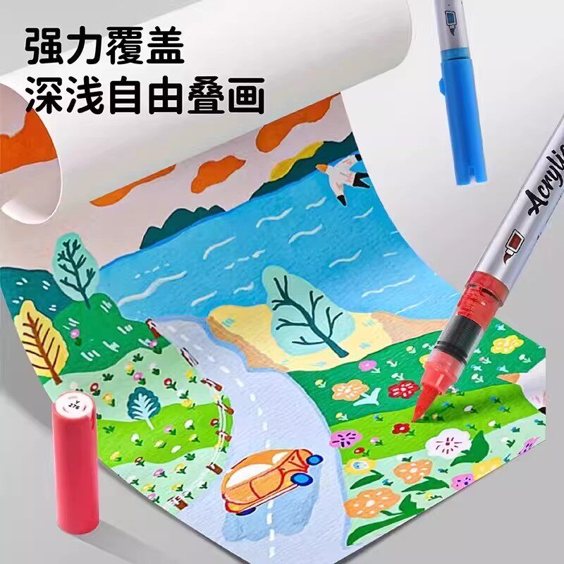 丙烯马克笔学生专用美术业不透纸可叠色儿童幼儿园小学无毒可水洗