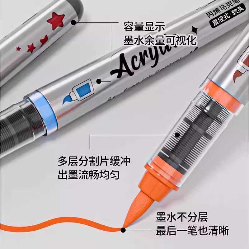直液式丙烯马克笔软头小学生美术专用水彩笔儿童颜色笔可水洗24色画笔不透色48绘画可叠色彩色笔36水性丙烯笔