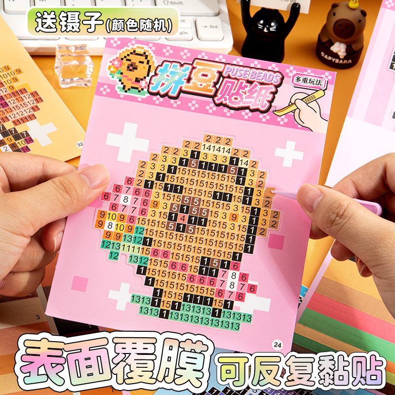 卡皮巴拉拼豆贴纸本ins高颜值像素风马赛克创意diy手工小贴画游戏拼图豆豆本女孩儿童解压益智玩具手账素材贴