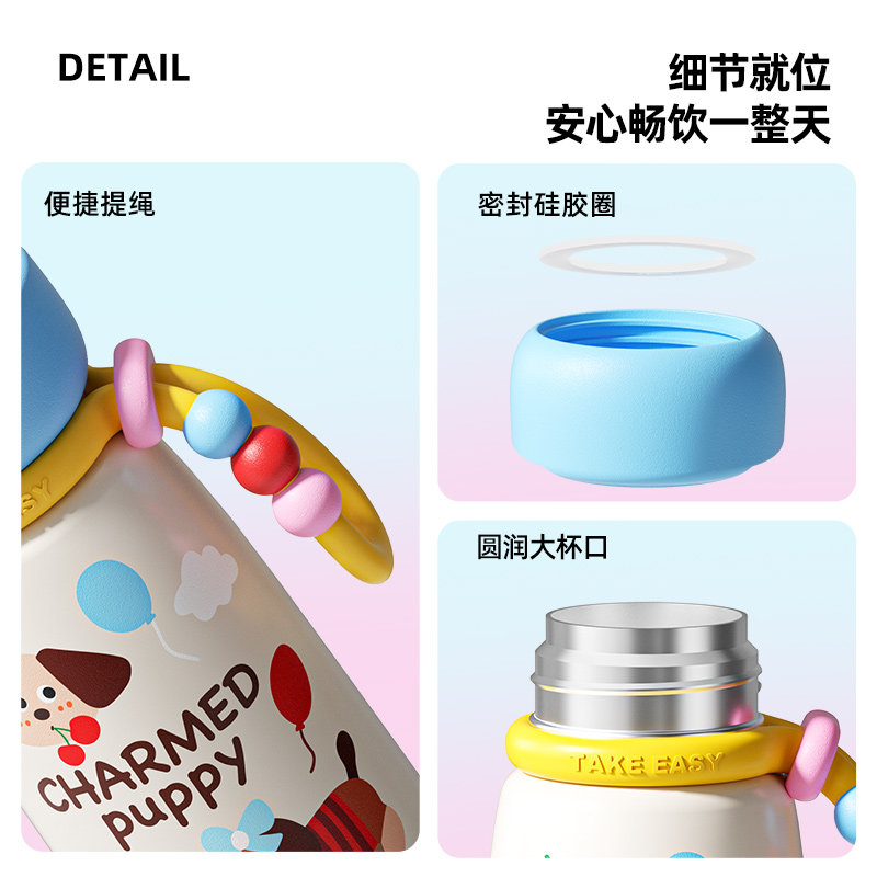 言仓线条小狗保温杯保冷便携水杯儿童学生女生情侣新年生日礼物
