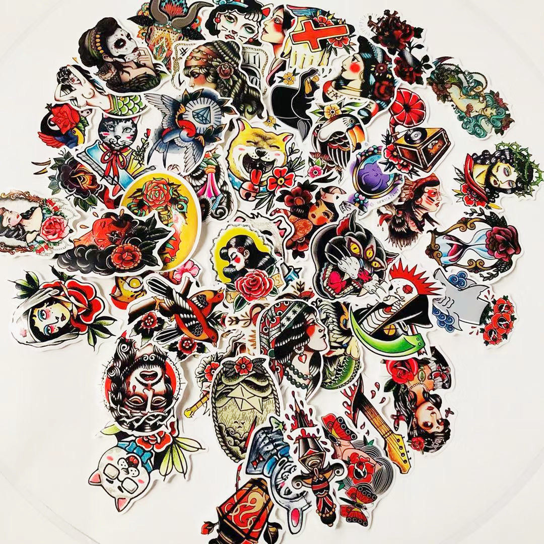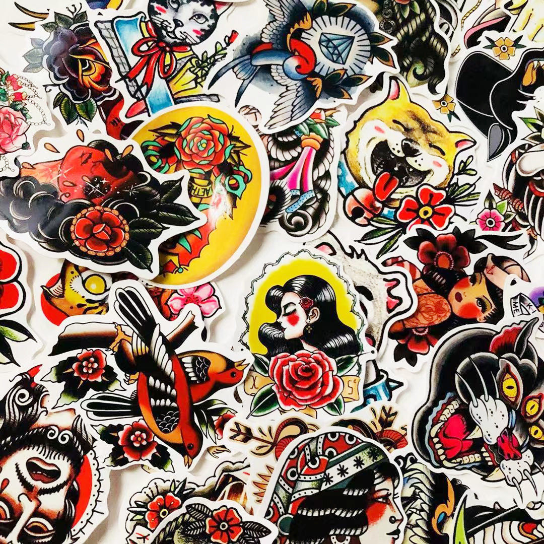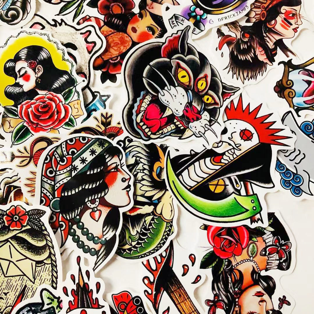 50张炫酷彩色old school 贴纸行李箱滑板死飞笔记本贴头盔车贴