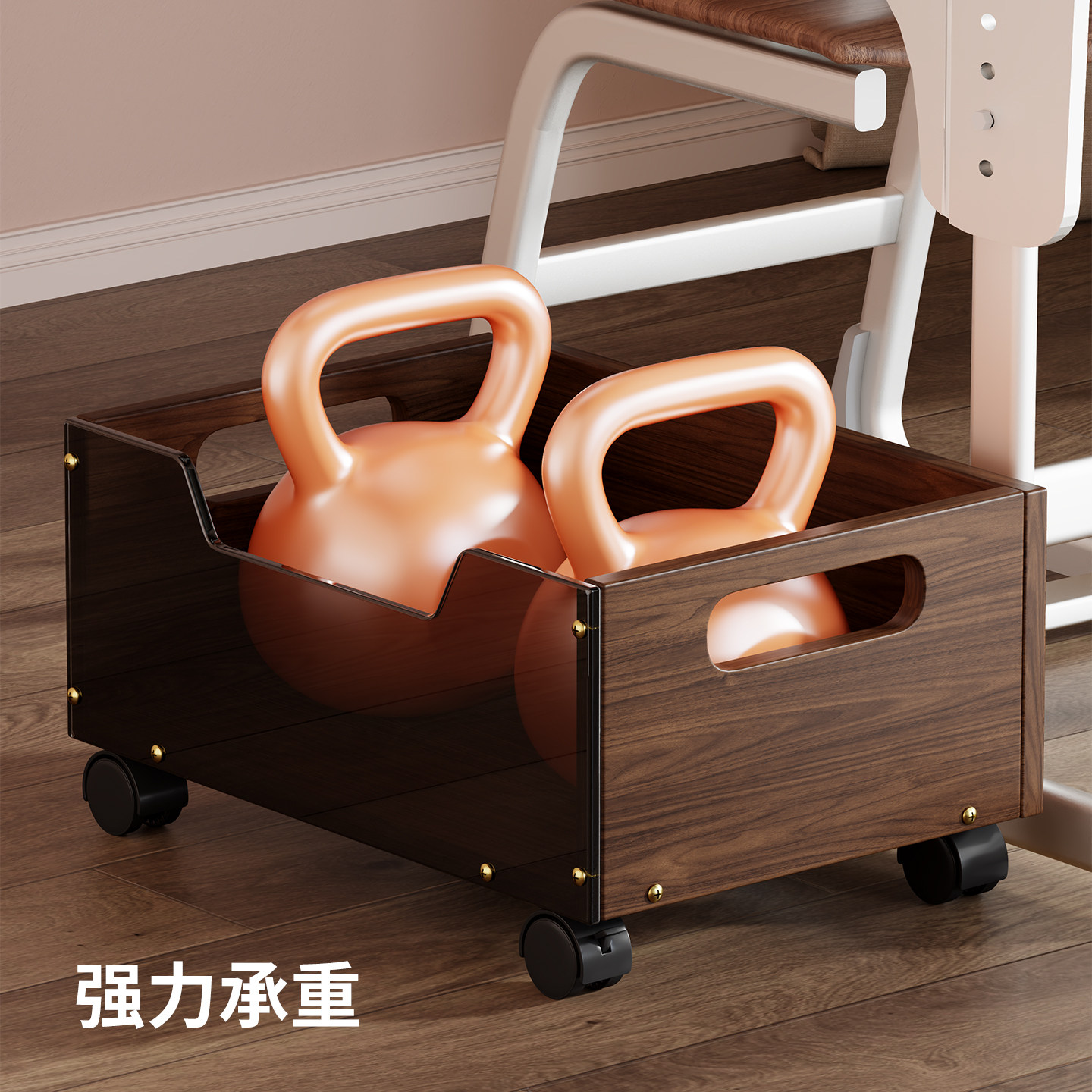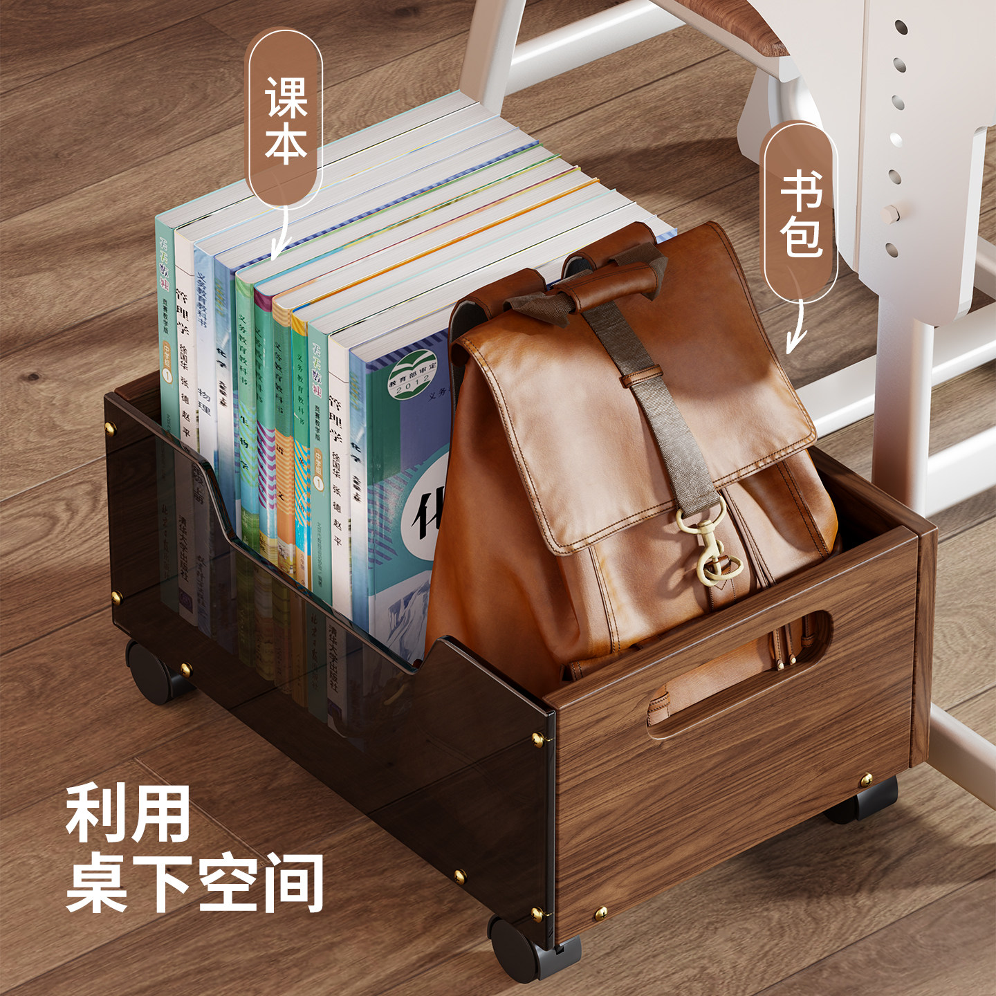 可移动收纳箱书箱学习桌边书籍整理箱大容量带轮可移动小推车书架