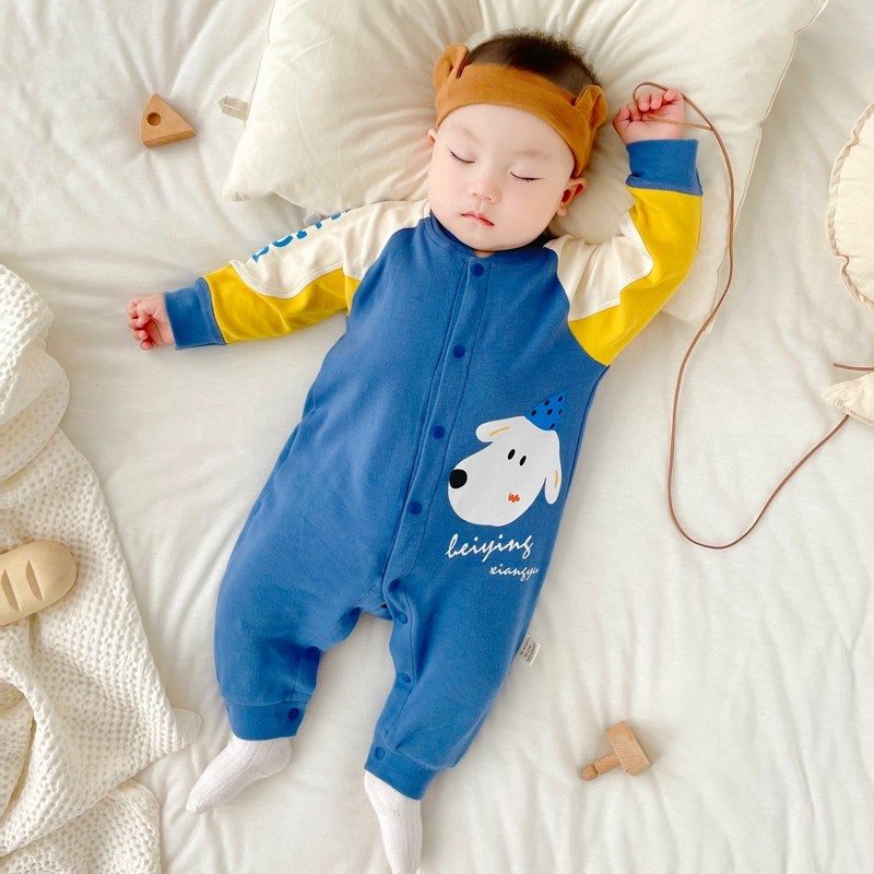 婴幼儿连体衣春秋季a类纯棉新生儿爬服男童新款衣服ins超萌外出服