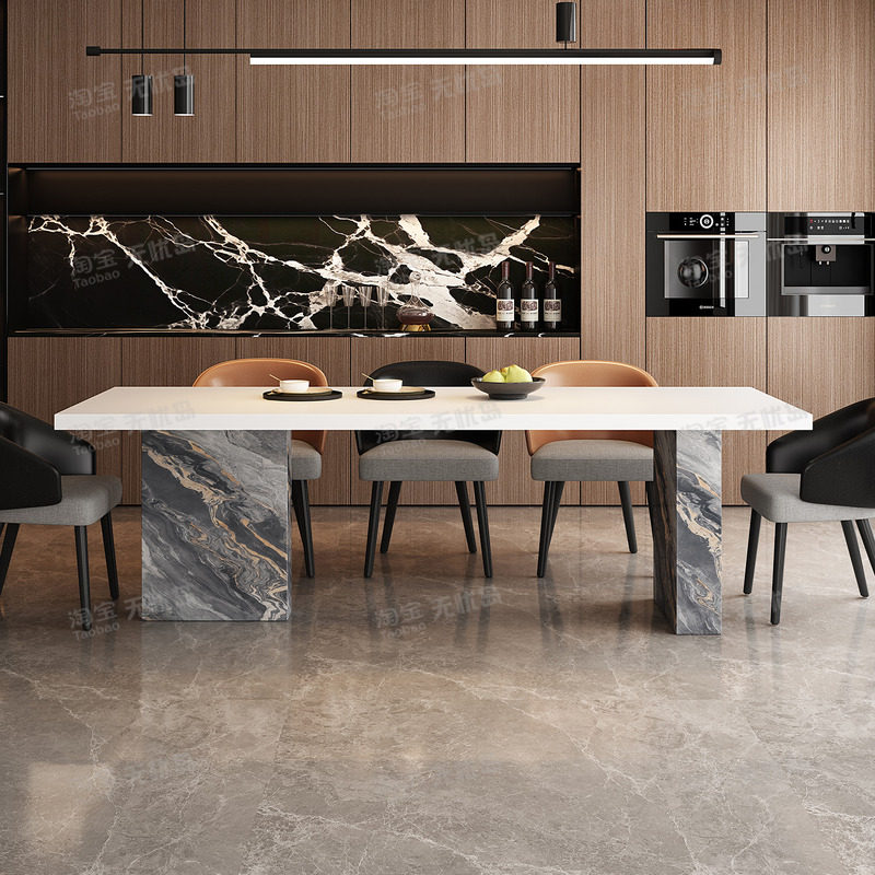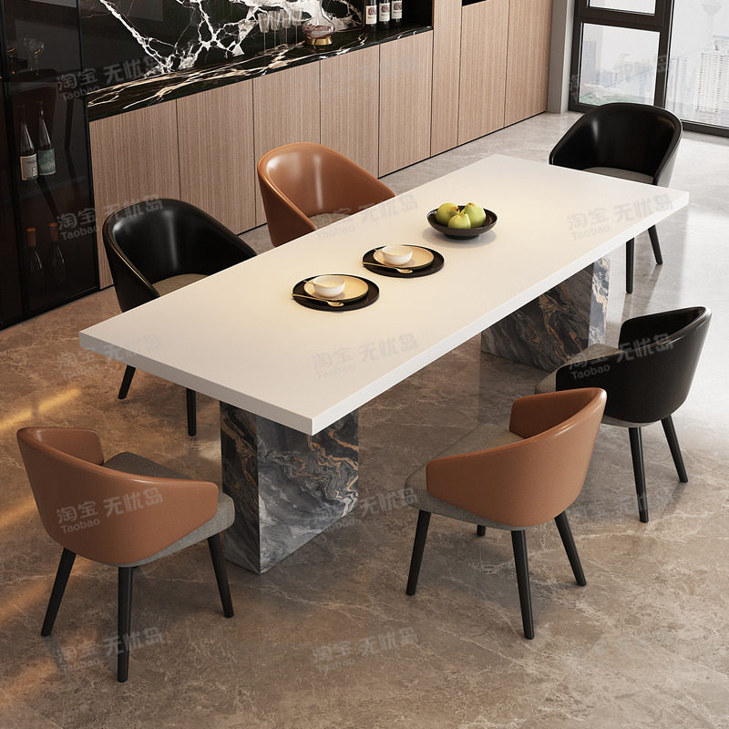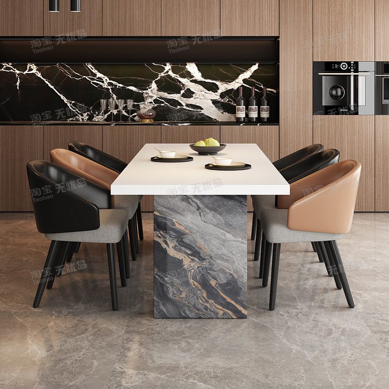 全包边意式极简餐桌椅组合轻奢高级感别墅实木高端轻奢岩板餐桌