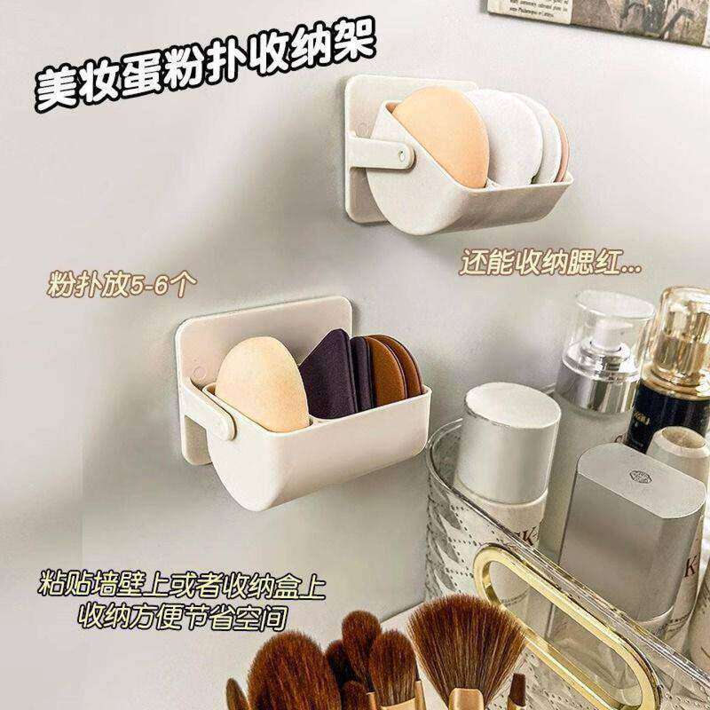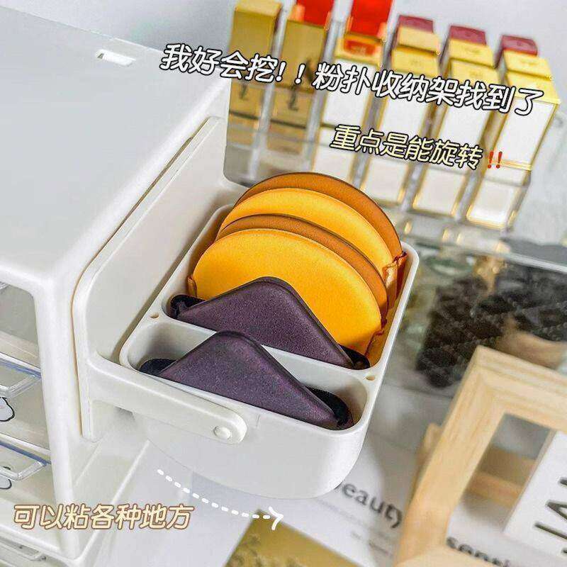 粉扑收纳盒旋转壁挂式化妆海绵分隔托架免打孔气垫美妆蛋透气架子