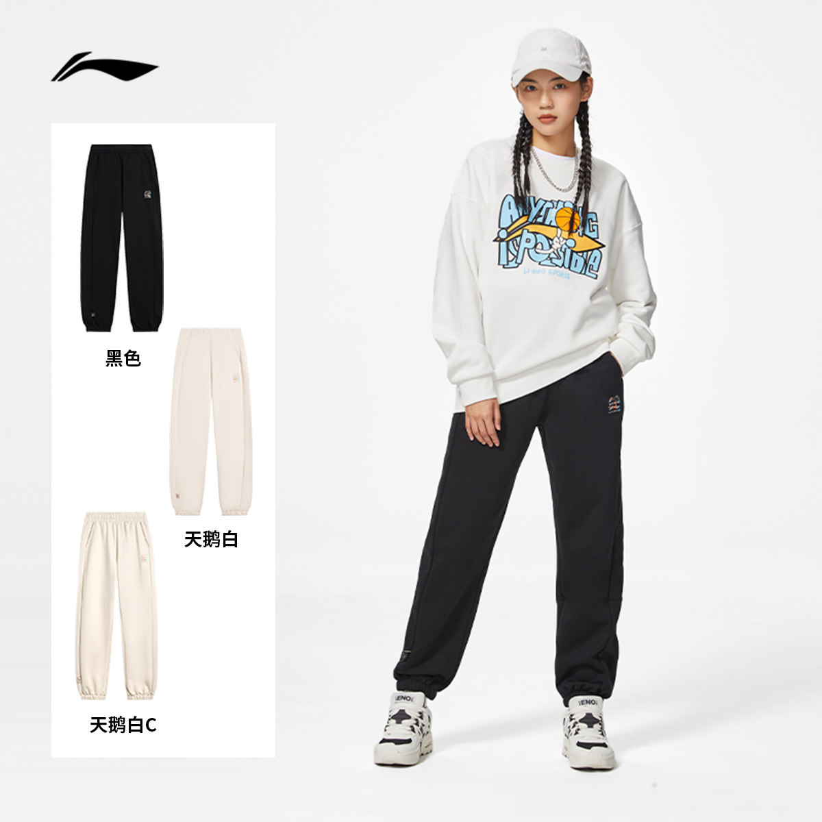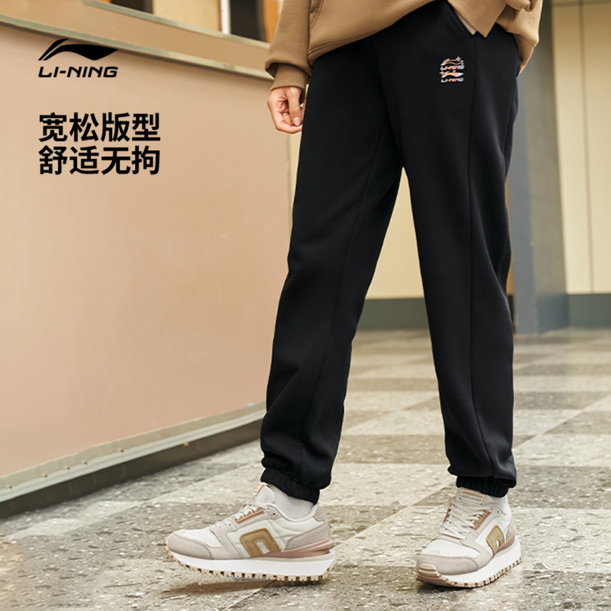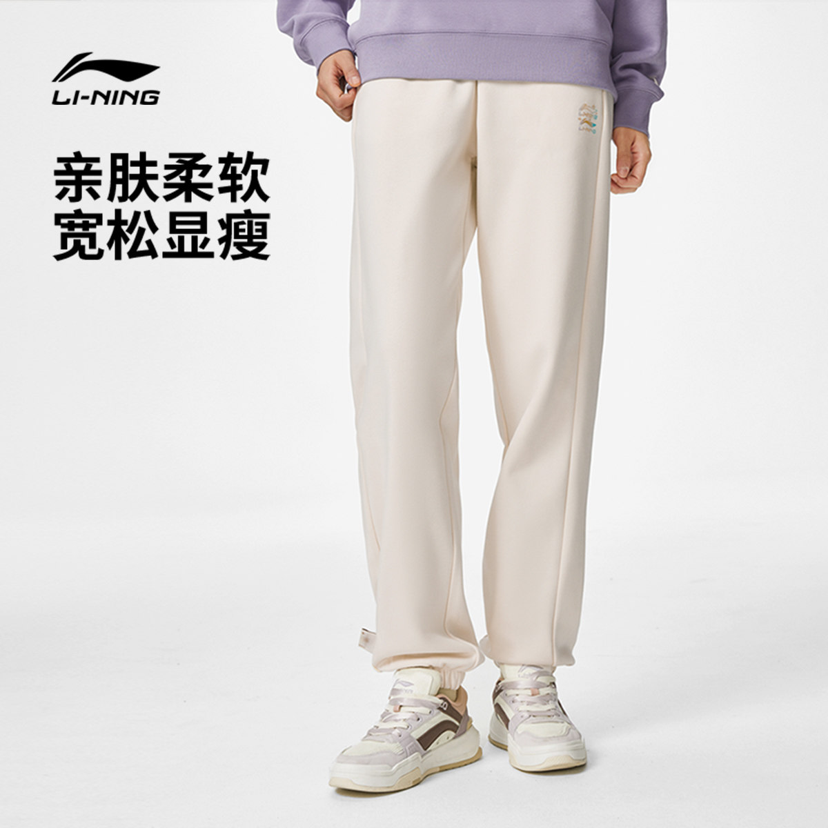 李宁运动裤女士春夏跑步女裤宽松休闲裤子针织卫裤束脚运动长裤女