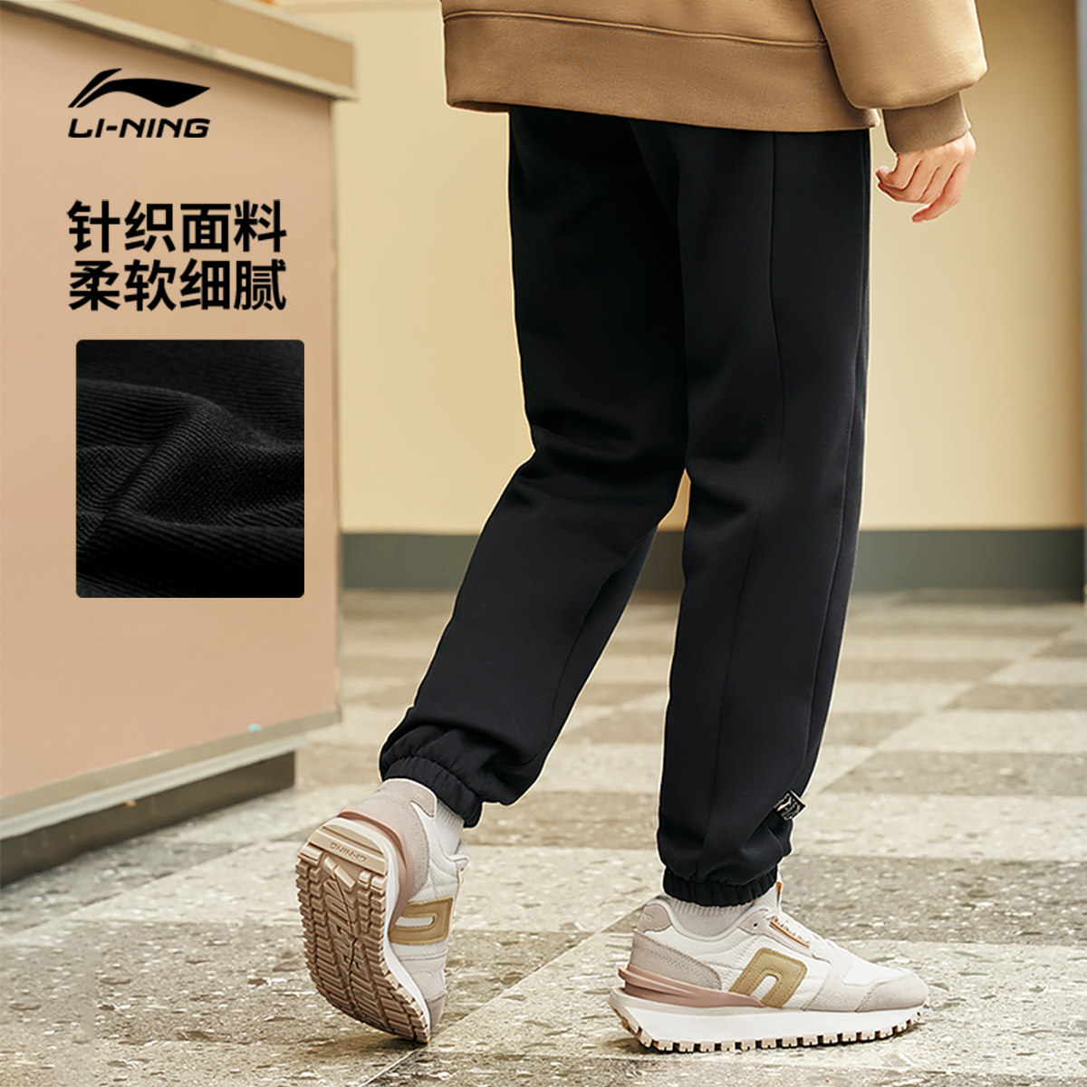 李宁卫裤男士新款反伍BADFIVE长裤保暖黑色裤子加绒休闲运动长裤