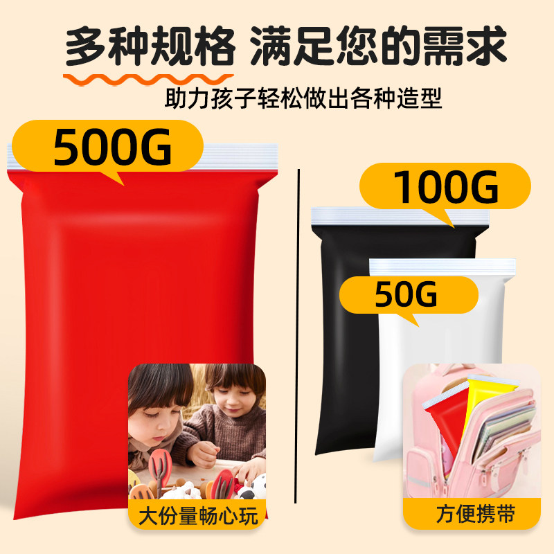 500克超轻粘土大包装幼儿园儿童小学生专用安全无毒橡皮泥大袋彩泥白色红色黏土手工diy材料包太空泥象皮泥