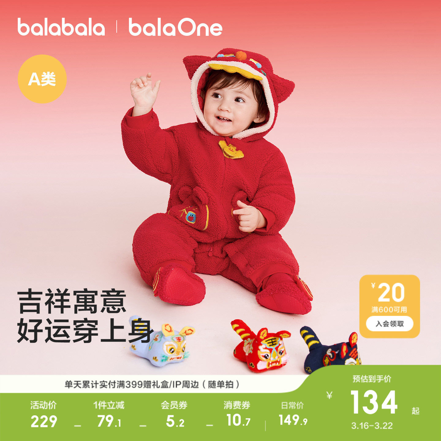 巴拉巴拉童装新生婴儿连体衣男宝宝衣服女哈衣2026儿童冬装红色