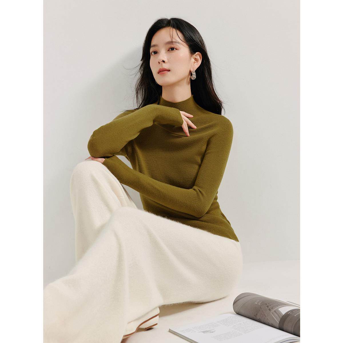一线成衣无缝女半高领套头打底衫秋冬内搭毛衣修身长袖羊毛针织衫