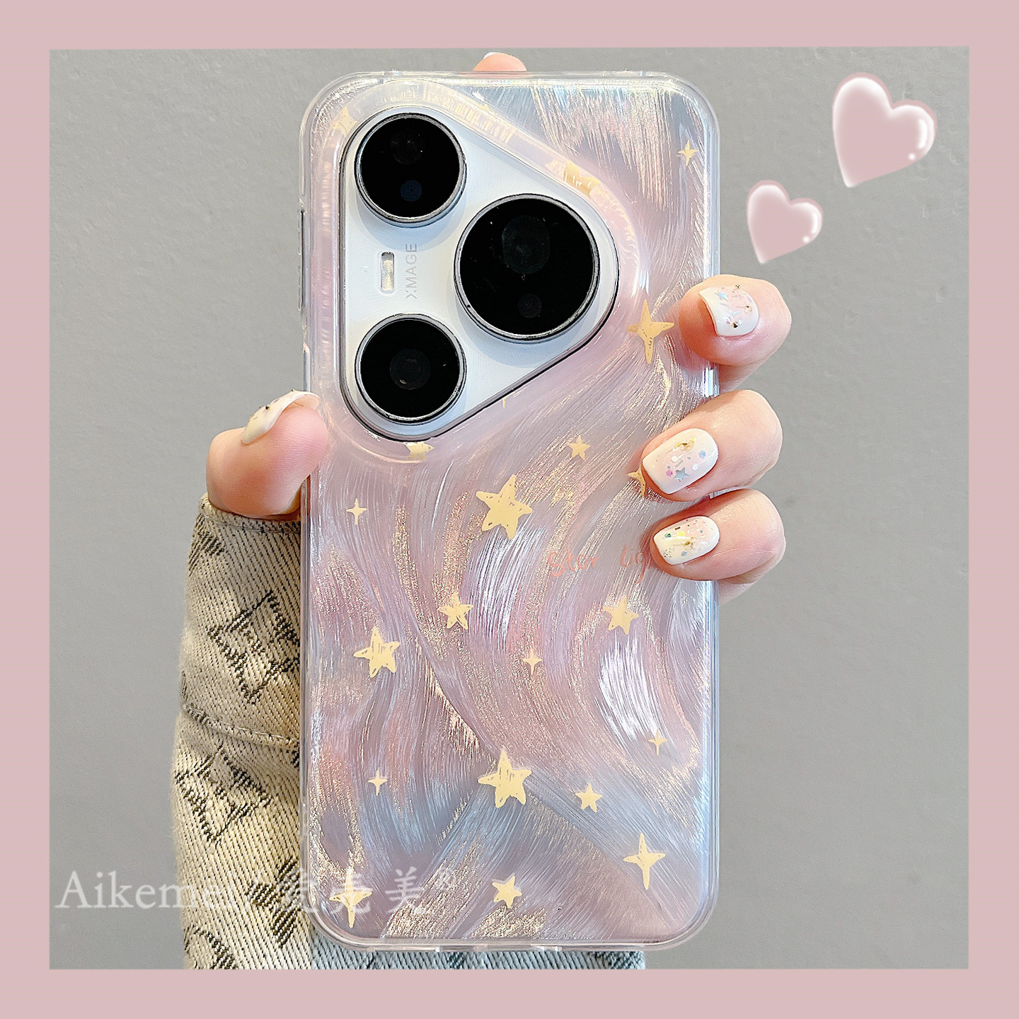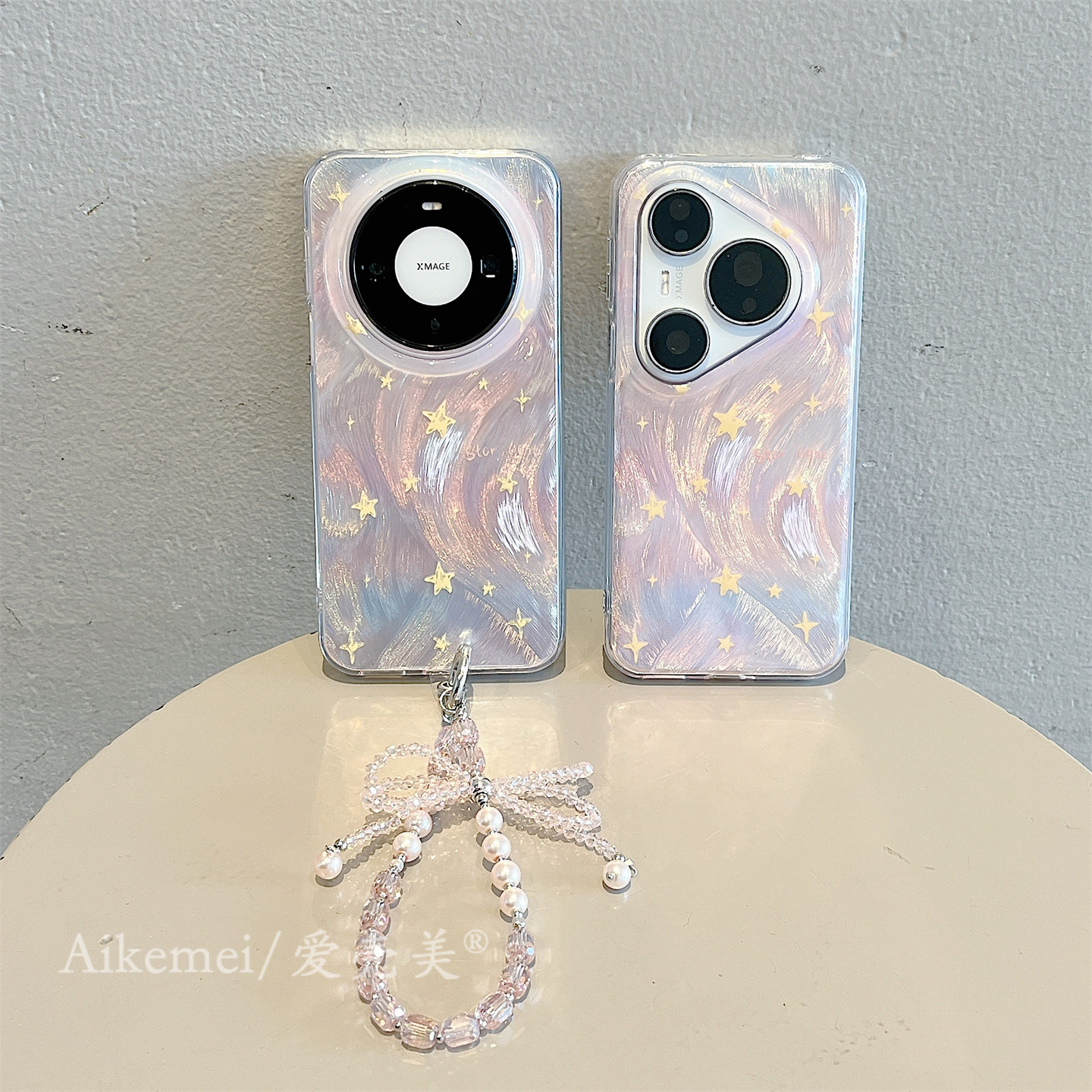 适用华为pura80pro+手机壳日韩ins粉色渐变羽纱纹星星Pura70pro链条挂绳p8070全包防摔mate80proamax双层女款