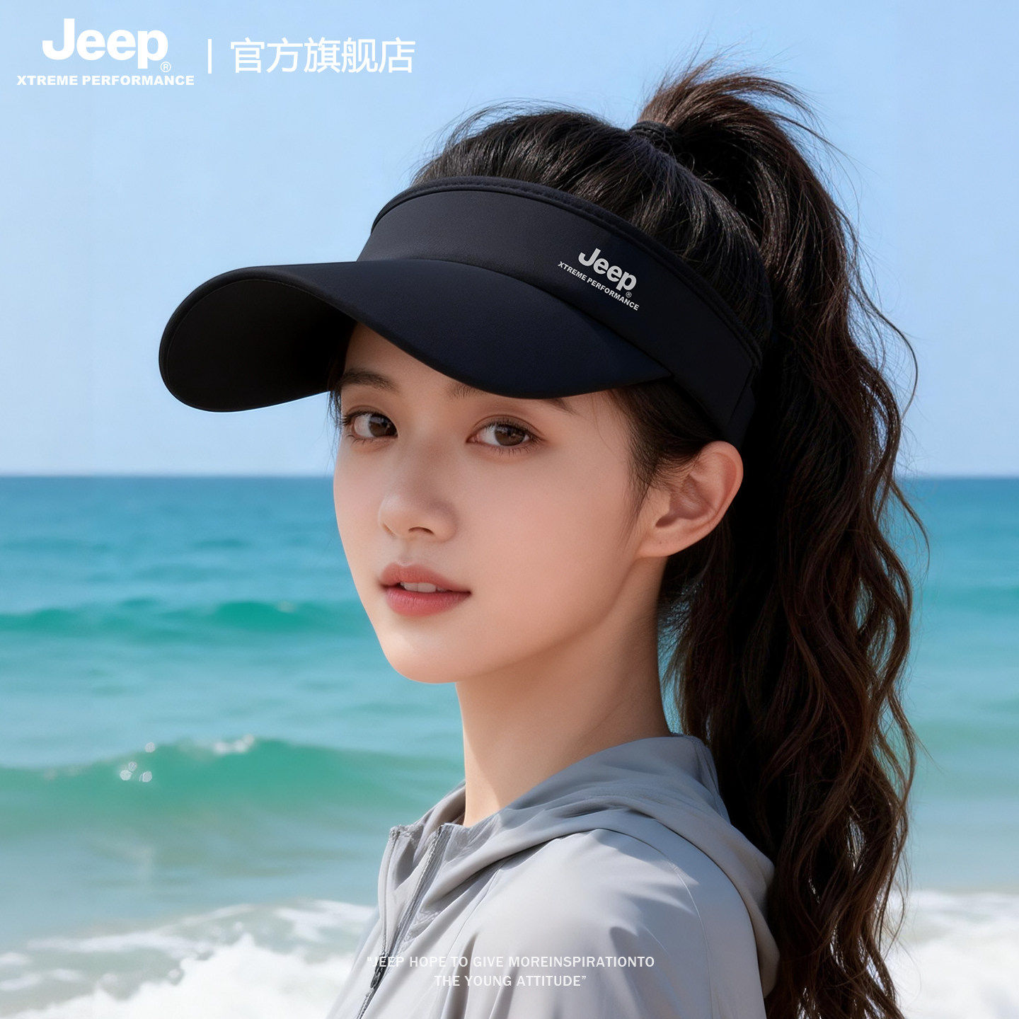 jeep吉普防晒面罩女防晒帽套装夏季防紫外线冰丝空顶帽遮阳帽子夏