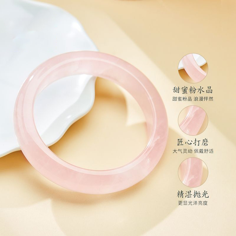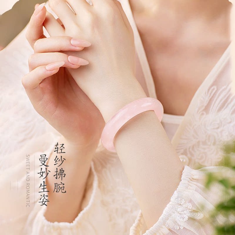 粉水晶手镯天然冰种水晶芙蓉粉晶女生镯子冰透雪花冰粉女款闺蜜