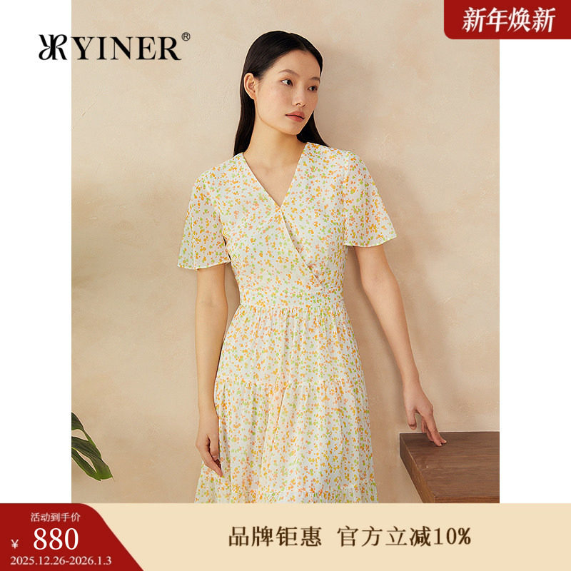 YINER音儿专选2025夏季新款法式印花波西米亚风茶歇蛋糕裙连衣裙