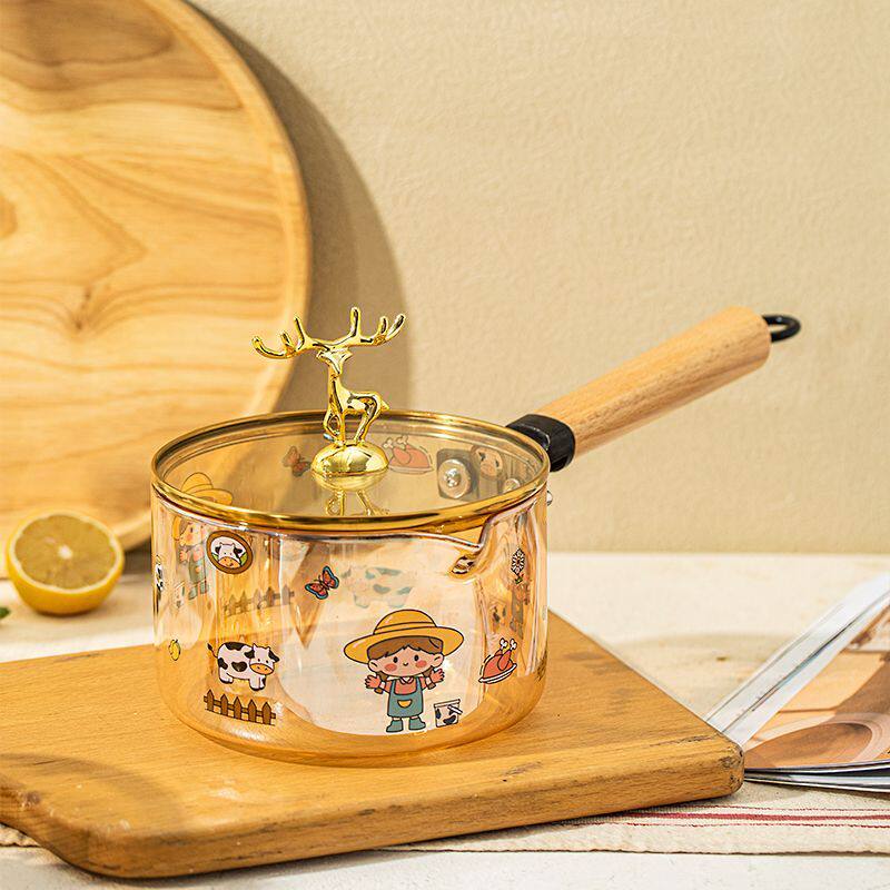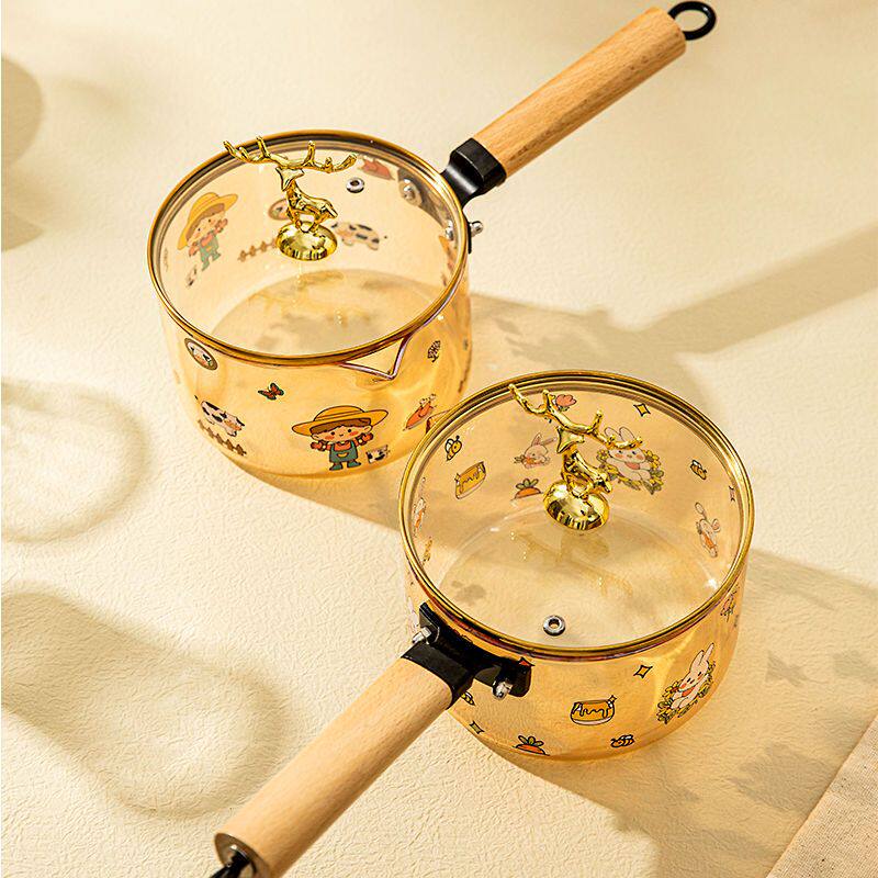 陶瓷做饭神器高颜值耐热小鹿头玻璃奶锅带盖把手家用印花高硼硅