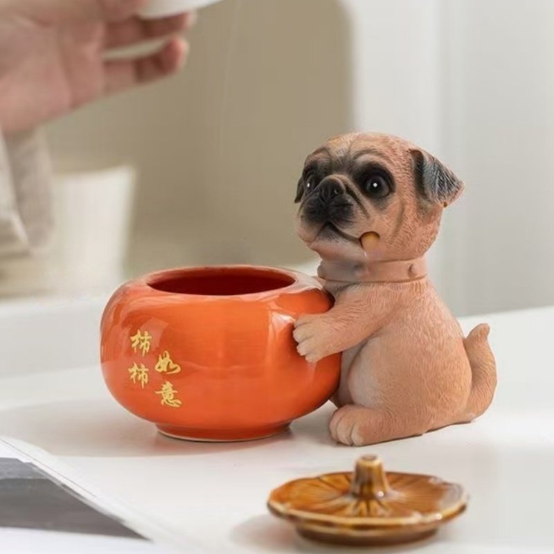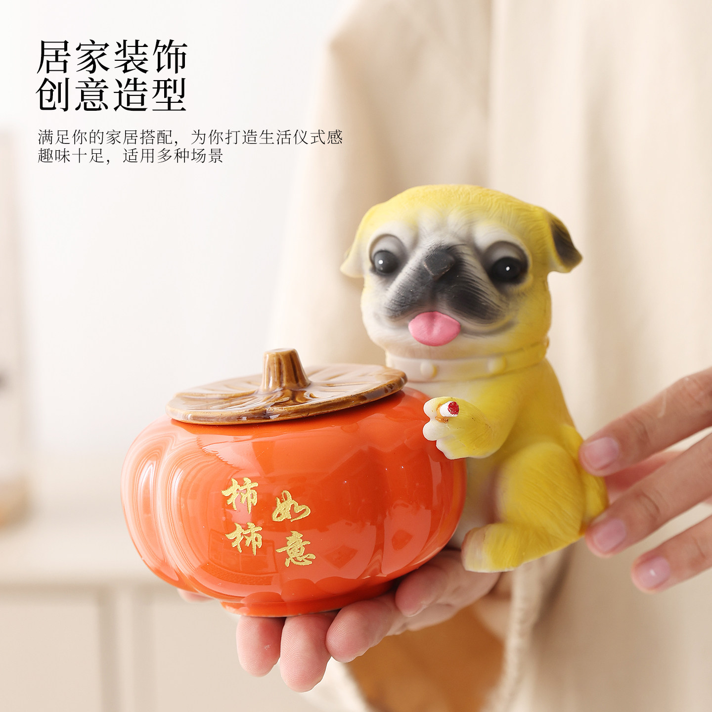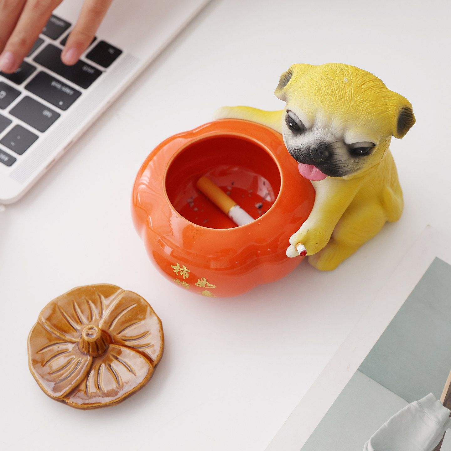 柿柿如意烟灰缸陶瓷缸柿子个性创意家用客厅防飞灰缸摆件带盖卧室