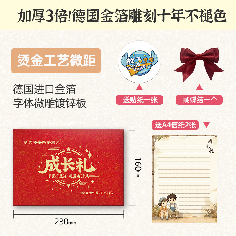 十岁生日礼盒定制信封套装仪式感成长纪念册儿童手写信封烫金款