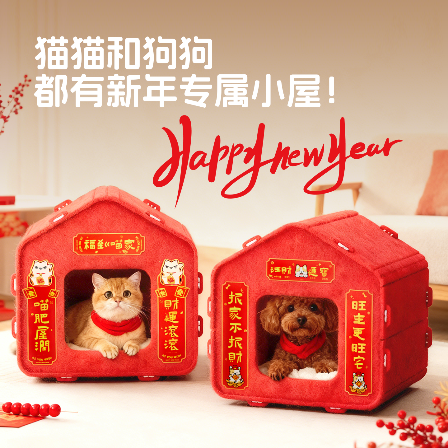 萌尾新年毛毡猫窝四季通用半封闭式床冬天保暖宠物狗新型猫咪睡窝