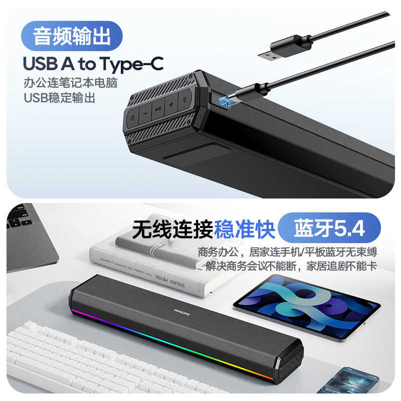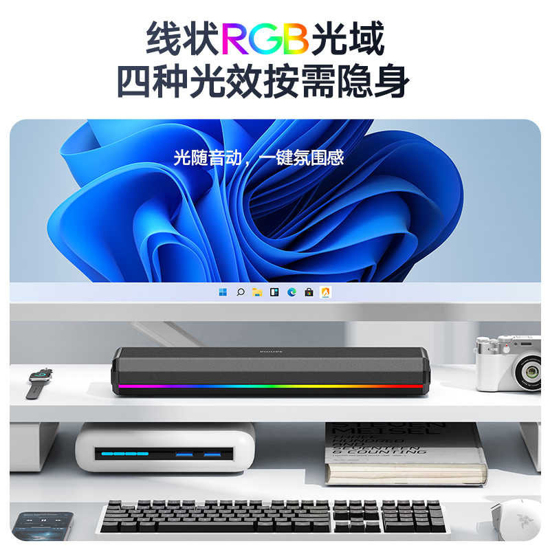 飞利浦SPA3200多媒体蓝牙音响RGB灯效桌面电竞音响家用台式电脑
