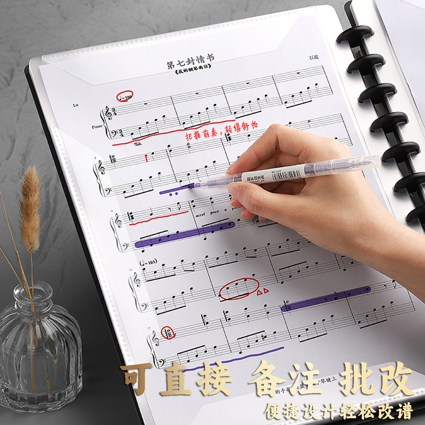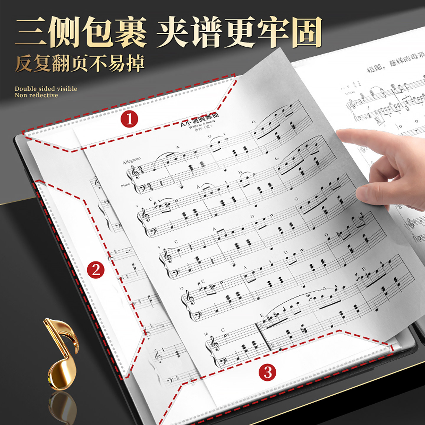 可订制A4乐谱夹活页文件夹架子鼓夹曲谱夹钢琴夹纯白粉蓝黑色音乐歌谱夹可改写透明插页不反光琴谱夹定制logo